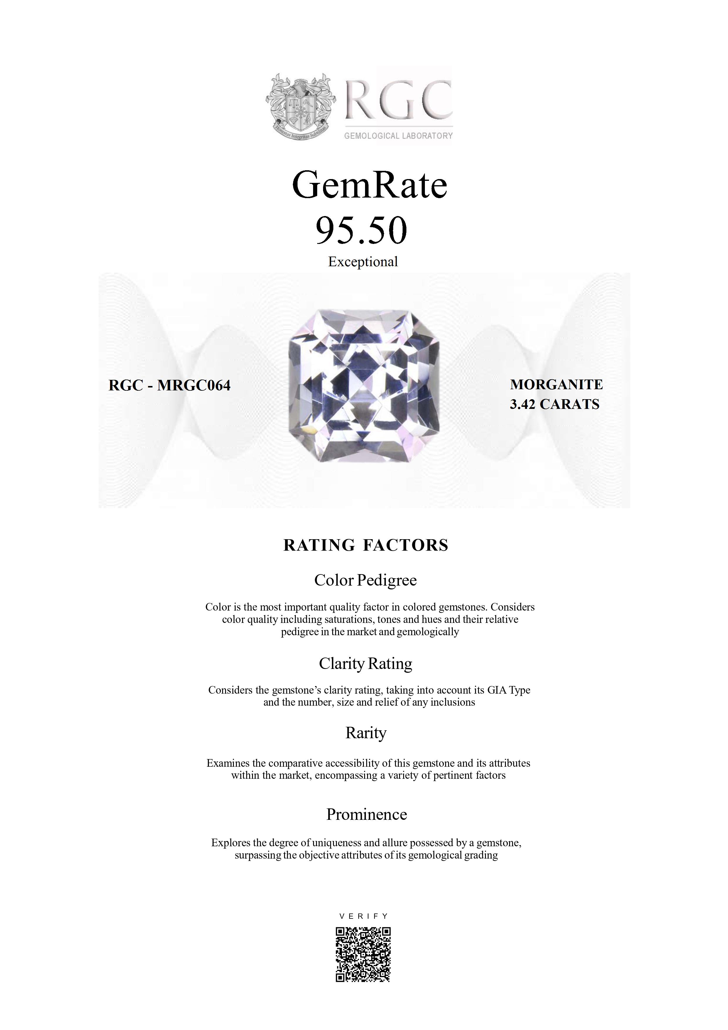 The RGC GemRate is a revolutionary system that addresses the importance and difficulty of comparing different colored gemstones with their peers in the marketplace. It assesses a wide variety of factors that exist in the marketplace and gemologically to classify gems in their genre using a standardized rating system. These factors are myriad but include quantifiable factors like color grade, clarity and cut, rarity factors examining relative rarity and also qualitative factors such as prominence, which examines the degree to which a gemstone stands out and captivates beyond just its measurable quality traits. It's essentially the stone's ability to catch attention and distinguish itself from others.