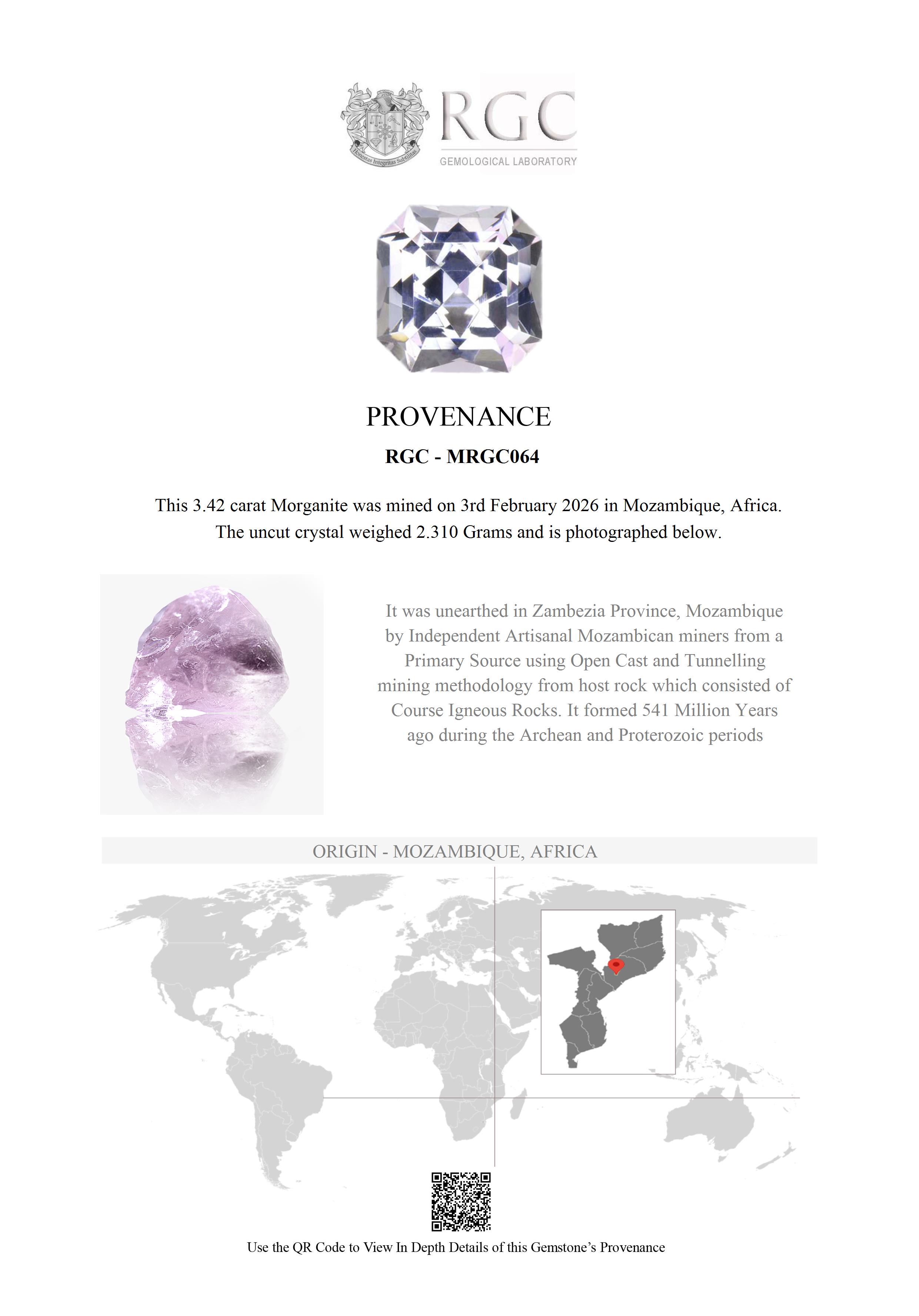 This mesmerizing Morganite hails from the remote African country of Mozambique. It formed hundreds of millions of years ago in the Archean and Proterozoic periods. In fact the entire geology of Mozambique is primarily extremely old Precambrian metamorphic and igneous crystalline basement rock, formed, in some cases more than two billion years ago.