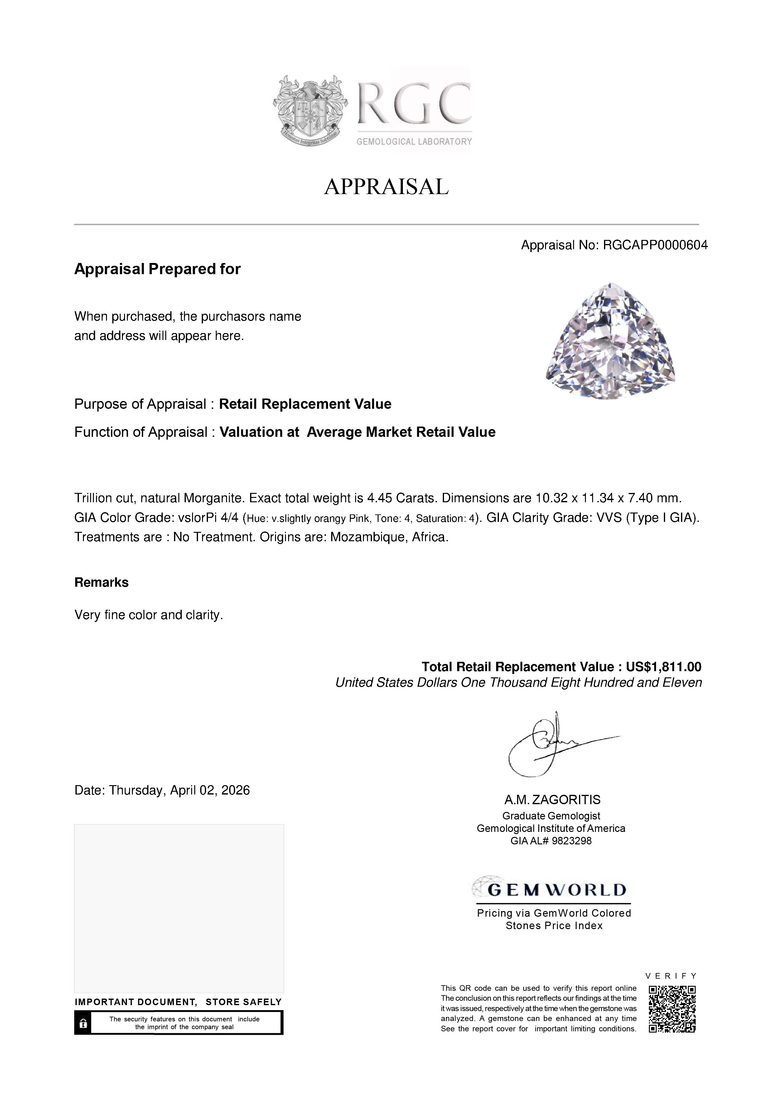 These Professional Gemological Reports will ship with the gemstone