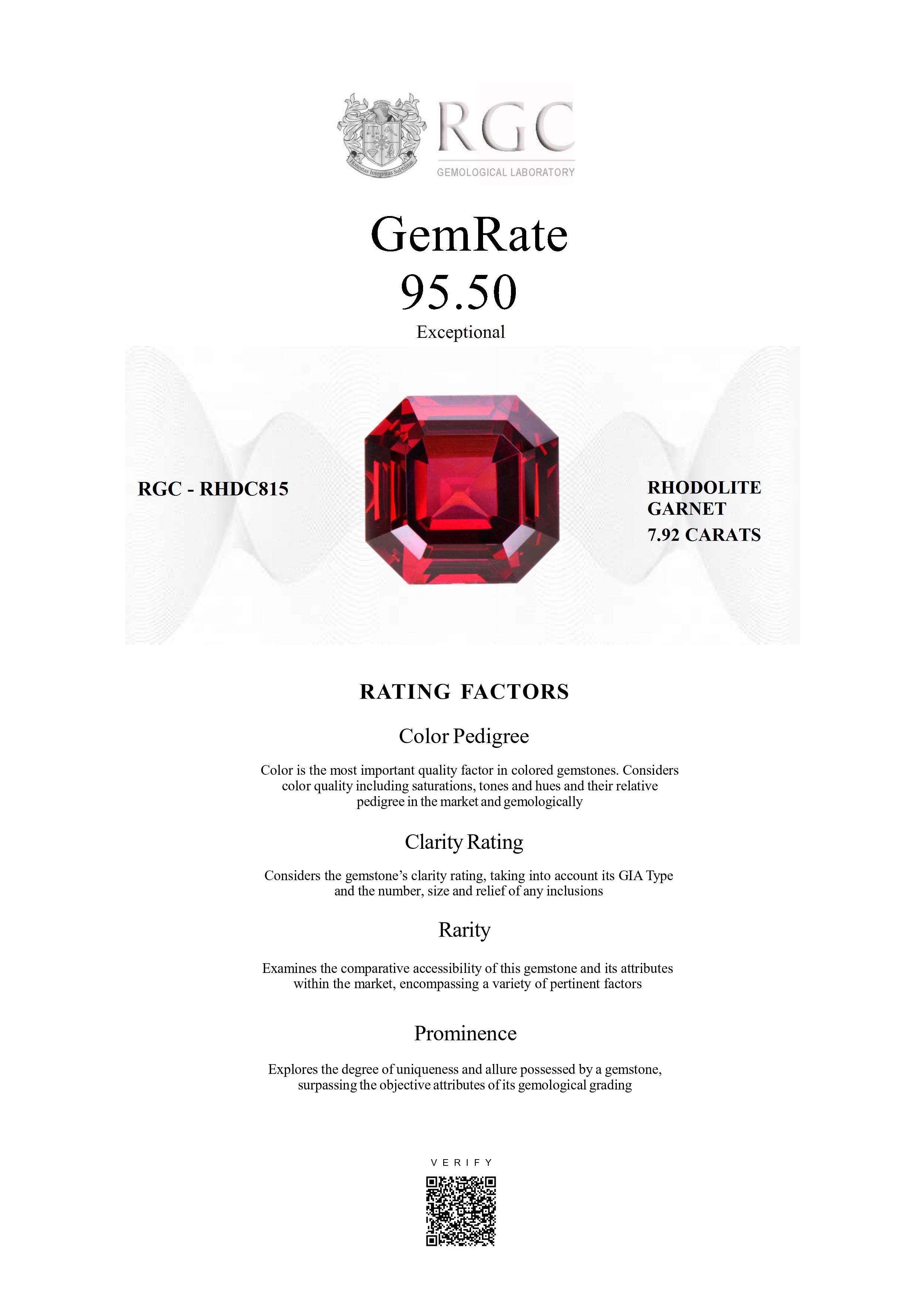 The RGC GemRate is a revolutionary system that addresses the importance and difficulty of comparing different colored gemstones with their peers in the marketplace. It assesses a wide variety of factors that exist in the marketplace and gemologically to classify gems in their genre using a standardized rating system. These factors are myriad but include quantifiable factors like color grade, clarity and cut, rarity factors examining relative rarity and also qualitative factors such as prominence, which examines the degree to which a gemstone stands out and captivates beyond just its measurable quality traits. It's essentially the stone's ability to catch attention and distinguish itself from others.