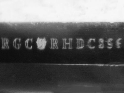 This image is an actual photograph of the laser inscription on this particular gemstone. Photography is done using a microscope camera at 45 x magnification to render the image.