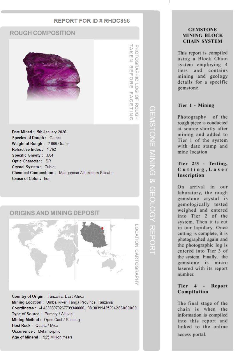 Several unique reports are shipped with this gemstone