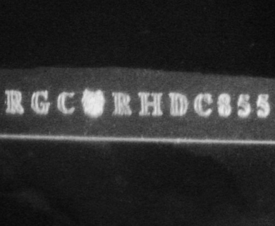 This image is an actual photograph of the laser inscription on this particular gemstone. Photography is done using a microscope camera at 45 x magnification to render the image.