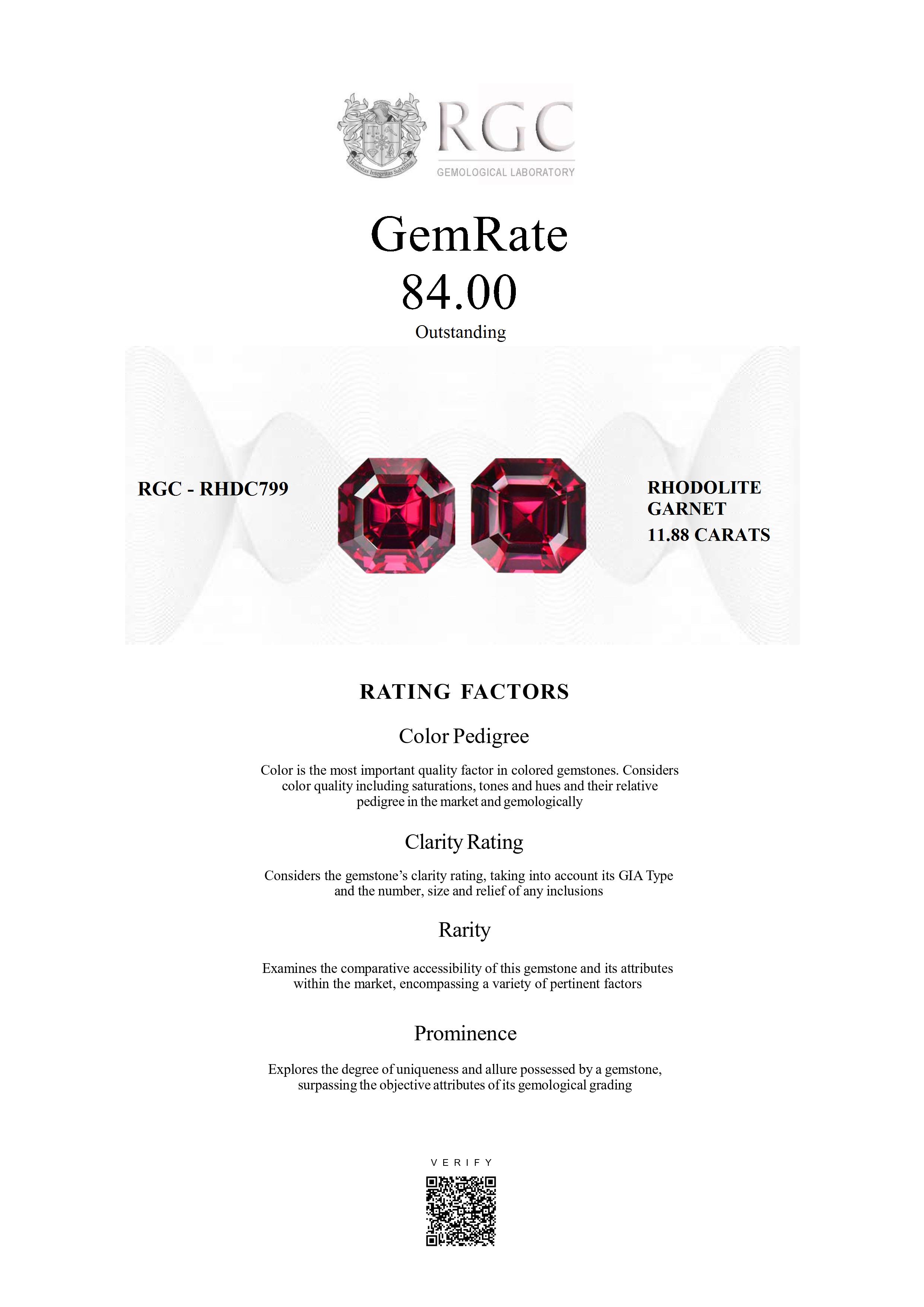 The RGC GemRate is a revolutionary system that addresses the importance and difficulty of comparing different colored gemstones with their peers in the marketplace. It assesses a wide variety of factors that exist in the marketplace and gemologically to classify gems in their genre using a standardized rating system. These factors are myriad but include quantifiable factors like color grade, clarity and cut, rarity factors examining relative rarity and also qualitative factors such as prominence, which examines the degree to which a gemstone stands out and captivates beyond just its measurable quality traits. It's essentially the stone's ability to catch attention and distinguish itself from others.