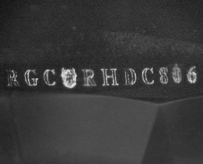 This image is an actual photograph of the laser inscription on this particular gemstone. Photography is done using a microscope camera at 45 x magnification to render the image.