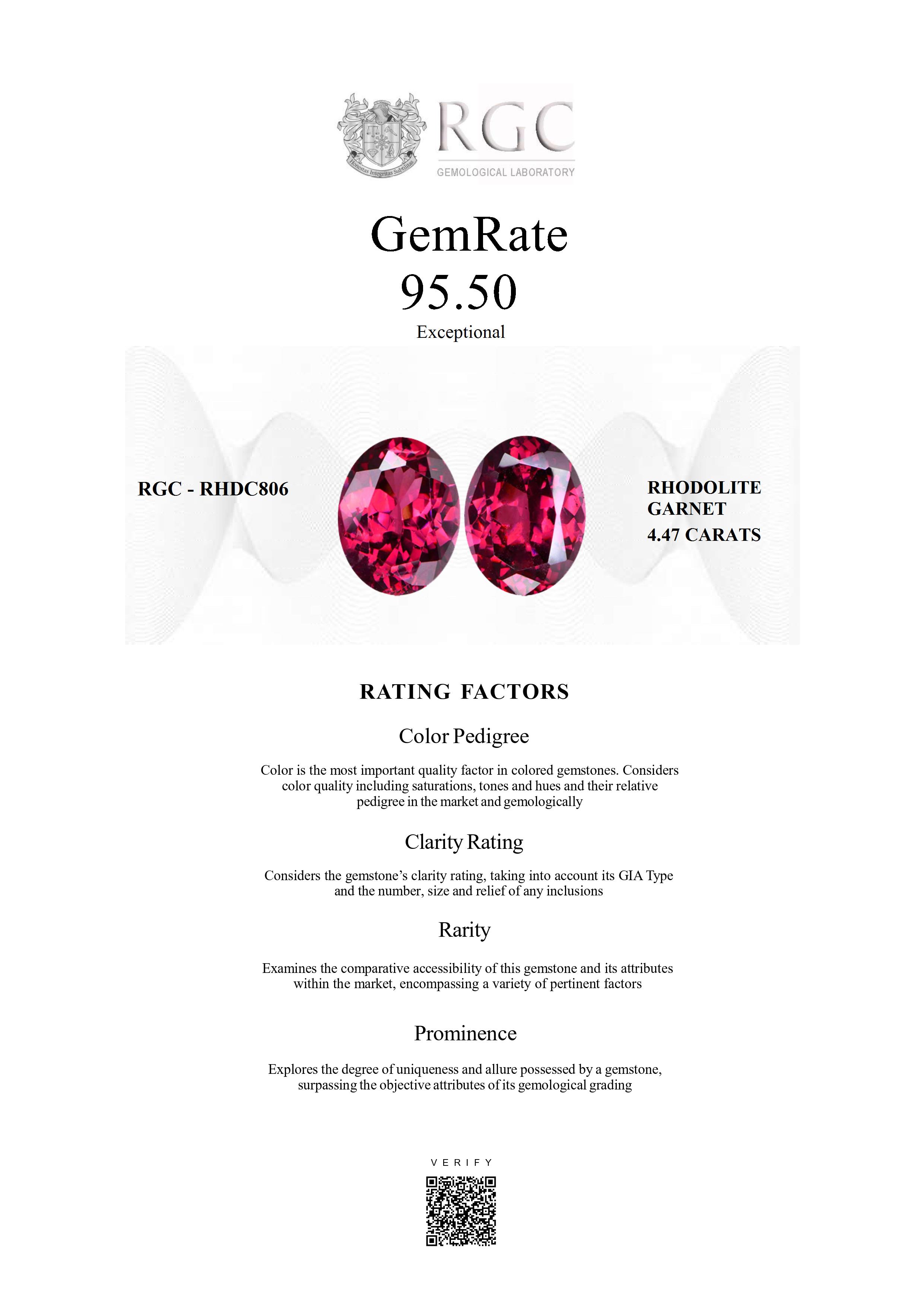 The RGC GemRate is a revolutionary system that addresses the importance and difficulty of comparing different colored gemstones with their peers in the marketplace. It assesses a wide variety of factors that exist in the marketplace and gemologically to classify gems in their genre using a standardized rating system. These factors are myriad but include quantifiable factors like color grade, clarity and cut, rarity factors examining relative rarity and also qualitative factors such as prominence, which examines the degree to which a gemstone stands out and captivates beyond just its measurable quality traits. It's essentially the stone's ability to catch attention and distinguish itself from others.
