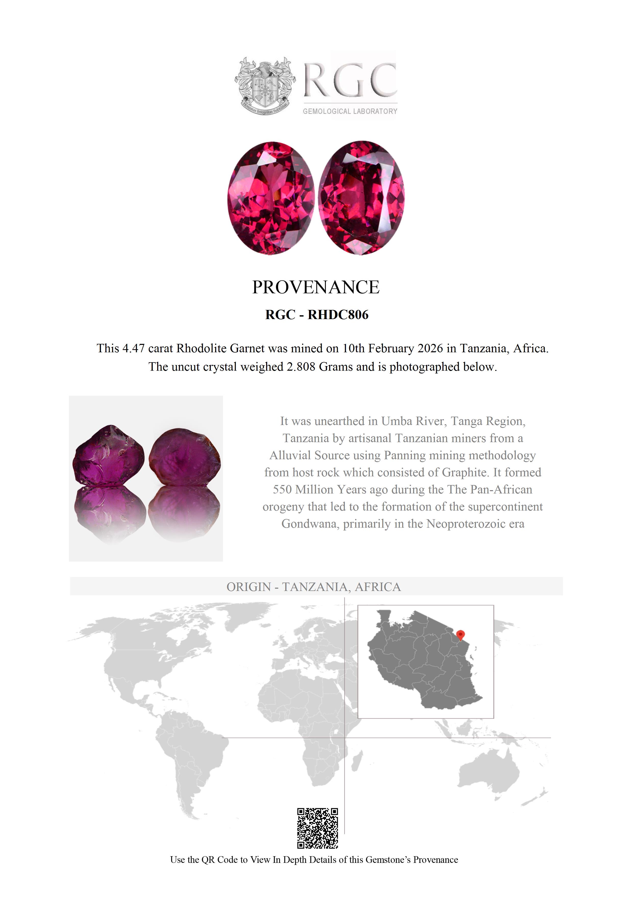 Near the small village of Mnazi, in the Usambara Mountains of Tanzania, a dirt track winds down the valley following the northern tributary of the famous Umba River. From here the road heads southwards and then eastwards to the Gerevi Hills. As the Umba River meanders through these hills it has for centuries deposited a gem gravel on the twists and bends of the river. It is among these deposits that these beautiful Rhodolites were found.