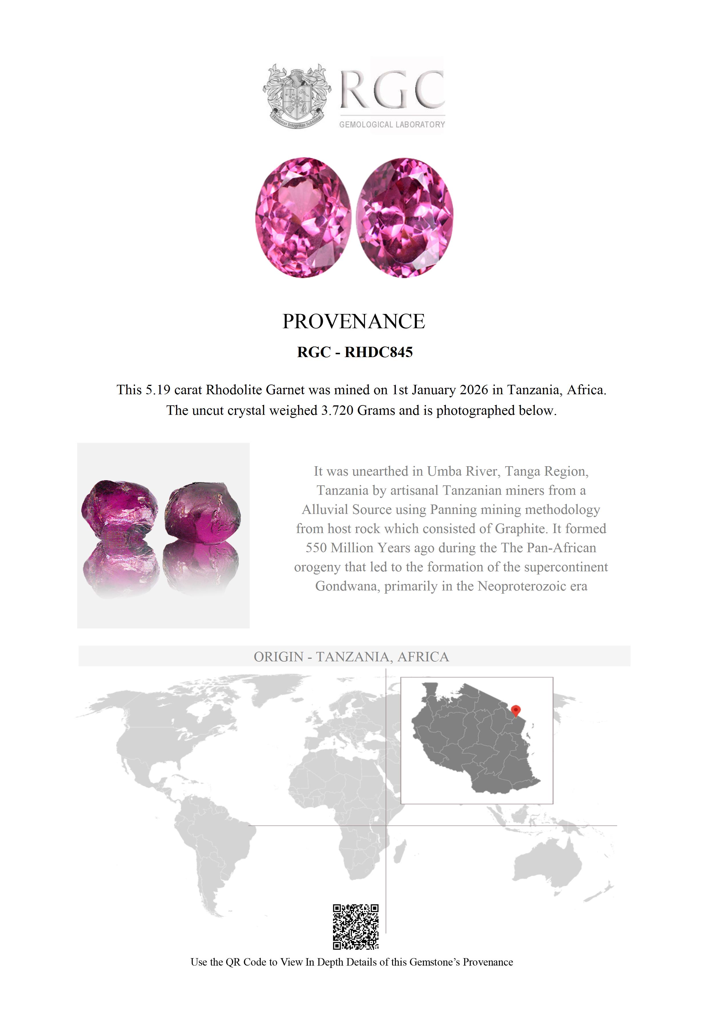 Near the small village of Mnazi, in the Usambara Mountains of Tanzania, a dirt track winds down the valley following the northern tributary of the famous Umba River. From here the road heads southwards and then eastwards to the Gerevi Hills. As the Umba River meanders through these hills it has for centuries deposited a gem gravel on the twists and bends of the river. It is among these deposits that these beautiful Rhodolites were found.