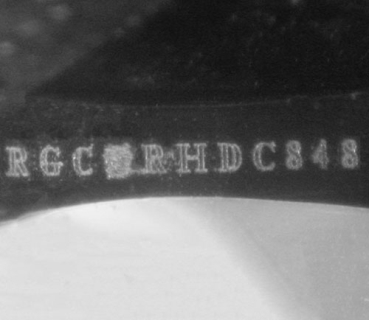 This image is an actual photograph of the laser inscription on this particular gemstone. Photography is done using a microscope camera at 45 x magnification to render the image.