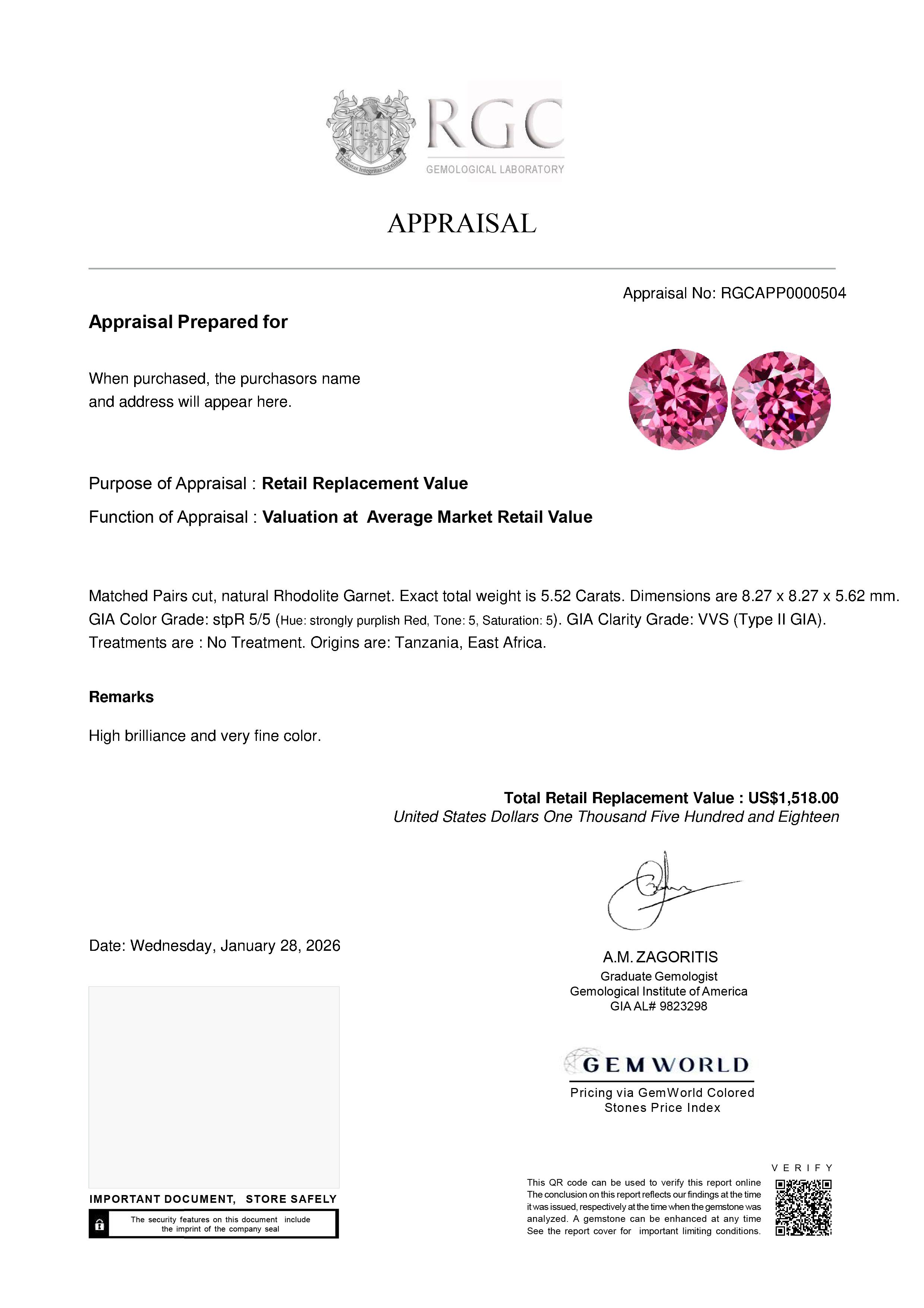 Our GemRate system was devised by our GIA Gemologists to provide a snapshot of a gemstone’s pedigree. This report is shipped with the gemstone.