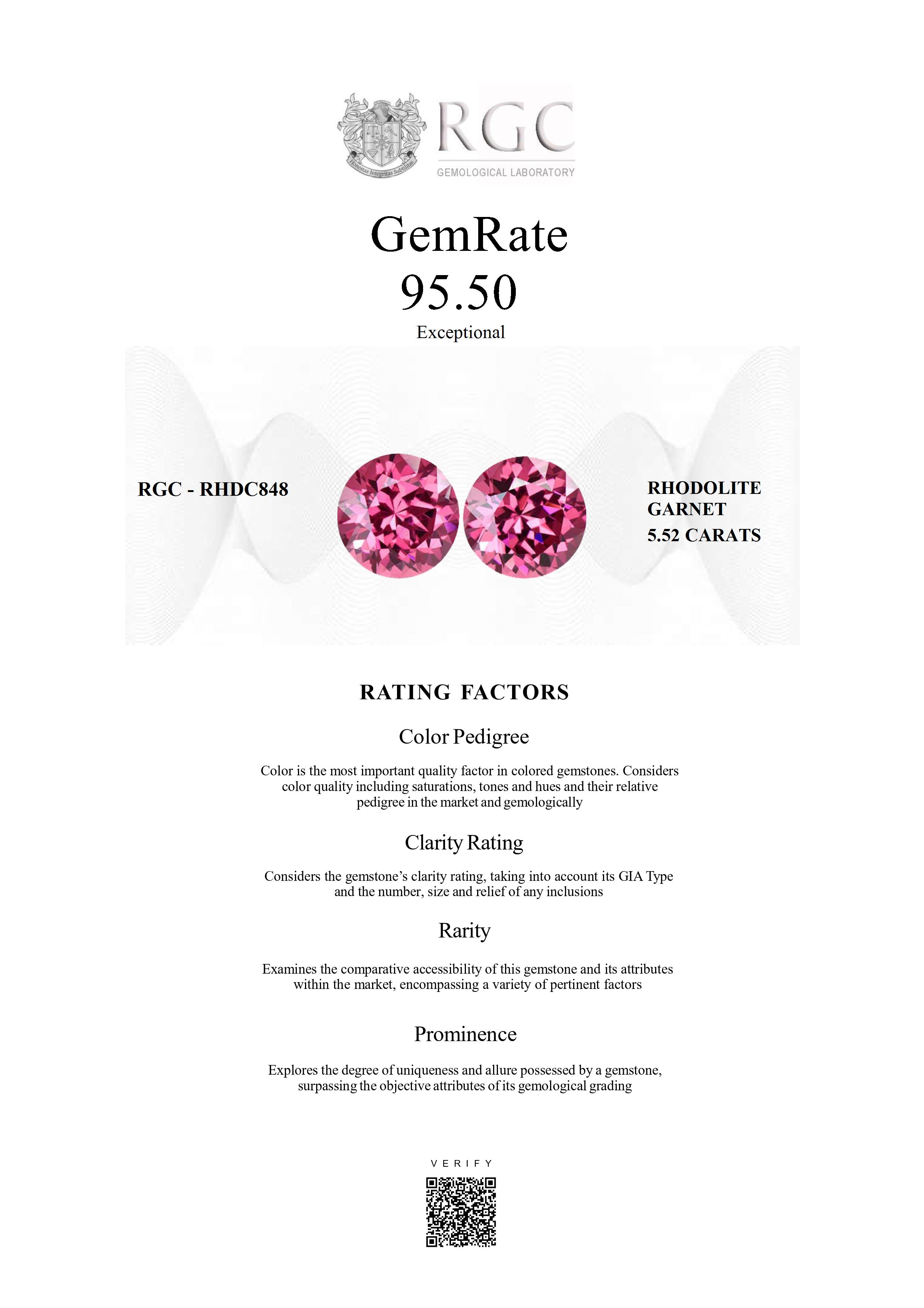 The RGC GemRate is a revolutionary system that addresses the importance and difficulty of comparing different colored gemstones with their peers in the marketplace. It assesses a wide variety of factors that exist in the marketplace and gemologically to classify gems in their genre using a standardized rating system. These factors are myriad but include quantifiable factors like color grade, clarity and cut, rarity factors examining relative rarity and also qualitative factors such as prominence, which examines the degree to which a gemstone stands out and captivates beyond just its measurable quality traits. It's essentially the stone's ability to catch attention and distinguish itself from others.