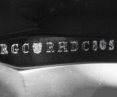 This image is an actual photograph of the laser inscription on this particular gemstone. Photography is done using a microscope camera at 45 x magnification to render the image.