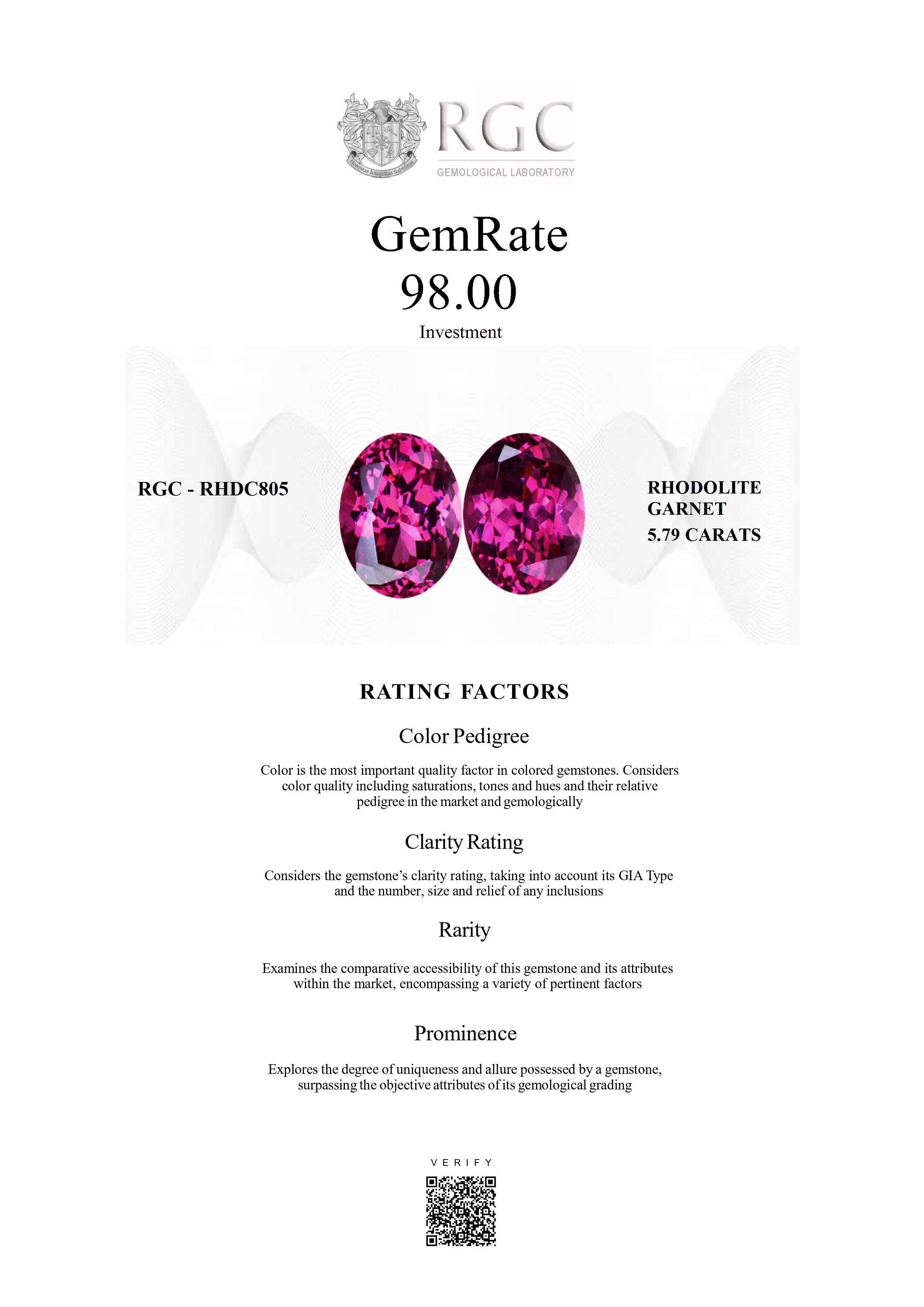 The RGC GemRate is a revolutionary system that addresses the importance and difficulty of comparing different colored gemstones with their peers in the marketplace. It assesses a wide variety of factors that exist in the marketplace and gemologically to classify gems in their genre using a standardized rating system. These factors are myriad but include quantifiable factors like color grade, clarity and cut, rarity factors examining relative rarity and also qualitative factors such as prominence, which examines the degree to which a gemstone stands out and captivates beyond just its measurable quality traits. It's essentially the stone's ability to catch attention and distinguish itself from others.