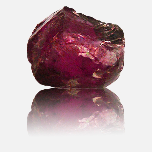 This Rhodolite Garnet is over 580 Million Years old. After being removed from the vein and "knocked" to remove the host rock, this Rhodolite Garnet weighed 2.689 Grams. The photograph on the left, shows it as it looked at this stage in its journey. Tests showed it has a Specific Gravity of 3.84, an optic character of SR and it formed in the Othorhombic crystal system. Its Chemical Composition is Manganese Alluminium Silicate and its Cause of Color is Iron