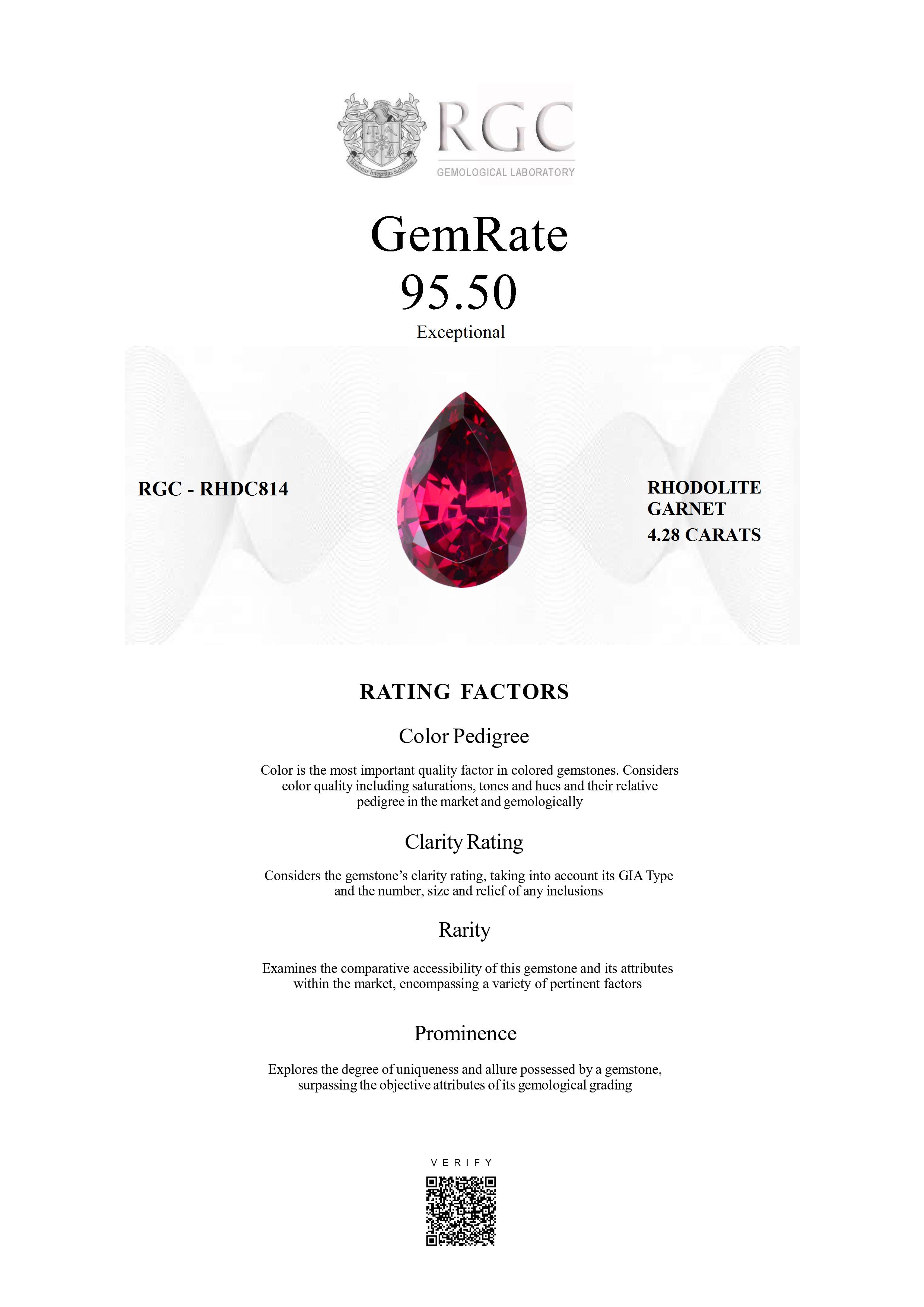 The RGC GemRate is a revolutionary system that addresses the importance and difficulty of comparing different colored gemstones with their peers in the marketplace. It assesses a wide variety of factors that exist in the marketplace and gemologically to classify gems in their genre using a standardized rating system. These factors are myriad but include quantifiable factors like color grade, clarity and cut, rarity factors examining relative rarity and also qualitative factors such as prominence, which examines the degree to which a gemstone stands out and captivates beyond just its measurable quality traits. It's essentially the stone's ability to catch attention and distinguish itself from others.