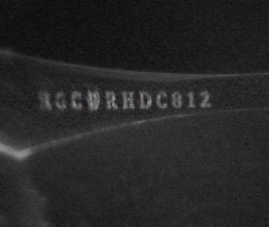 This image is an actual photograph of the laser inscription on this particular gemstone. Photography is done using a microscope camera at 45 x magnification to render the image.