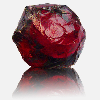 This Rhodolite Garnet is over 580 Million Years old. After being removed from the vein and "knocked" to remove the host rock, this Rhodolite Garnet weighed 9.570 Grams. The photograph on the left, shows it as it looked at this stage in its journey. Tests showed it has a Specific Gravity of 3.84, an optic character of SR and it formed in the Othorhombic crystal system. Its Chemical Composition is Manganese Alluminium Silicate and its Cause of Color is Iron