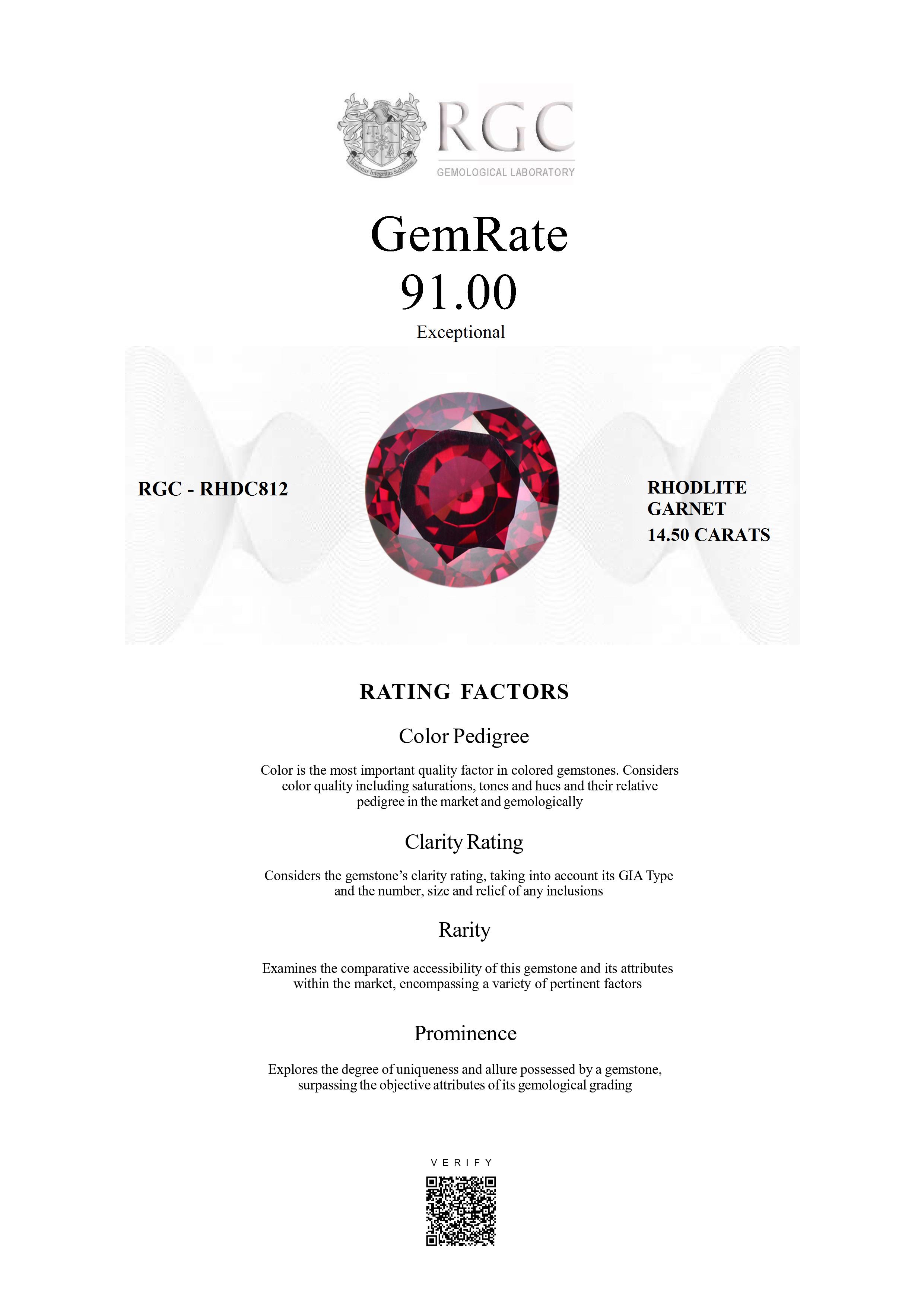 The RGC GemRate is a revolutionary system that addresses the importance and difficulty of comparing different colored gemstones with their peers in the marketplace. It assesses a wide variety of factors that exist in the marketplace and gemologically to classify gems in their genre using a standardized rating system. These factors are myriad but include quantifiable factors like color grade, clarity and cut, rarity factors examining relative rarity and also qualitative factors such as prominence, which examines the degree to which a gemstone stands out and captivates beyond just its measurable quality traits. It's essentially the stone's ability to catch attention and distinguish itself from others.