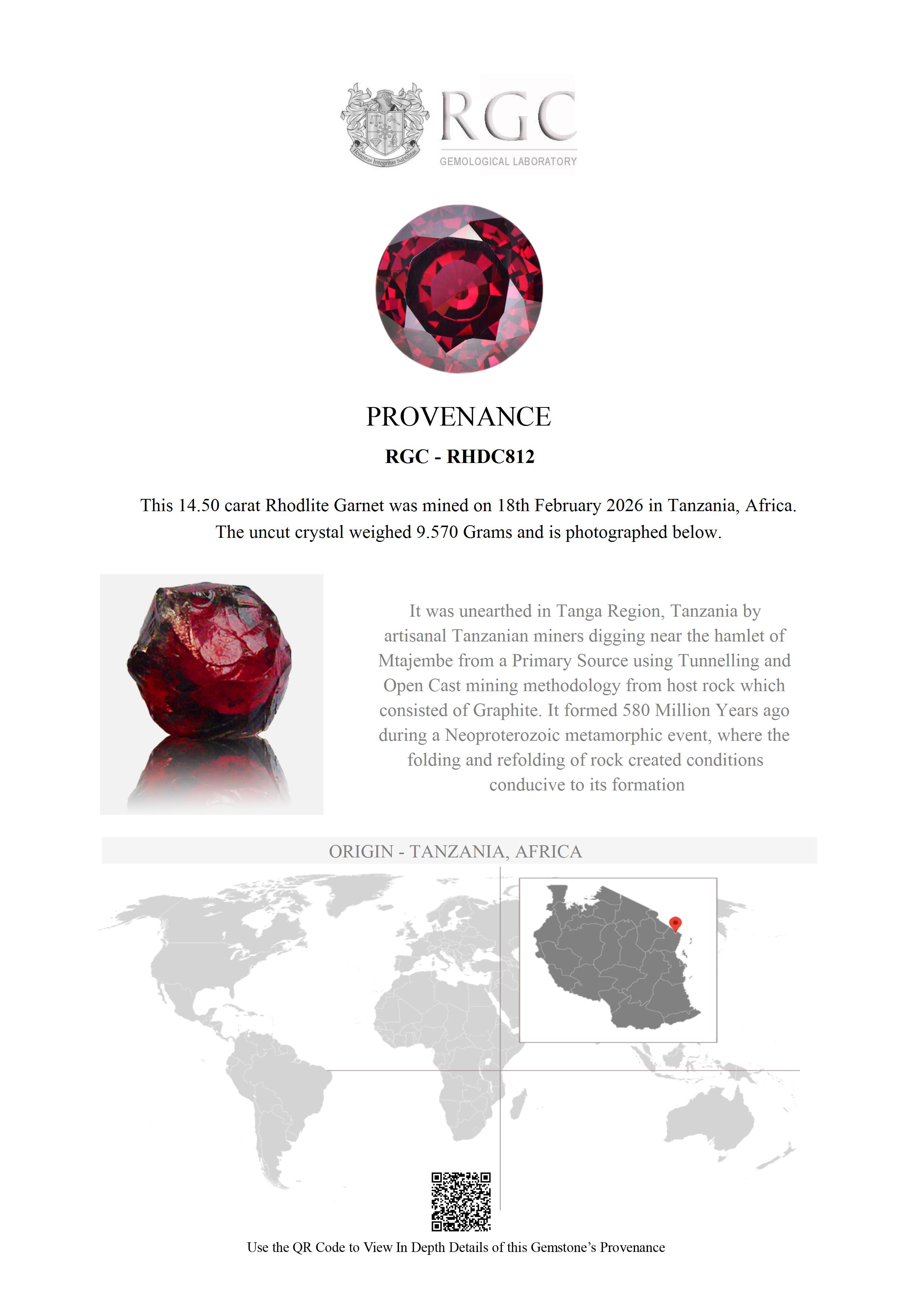 This superb Tanga Rhodolite originated from this deposit, and although mined only recently, it formed hundreds of millions of years ago with a process called metamorphism, where magma pushed its way up through the existing rock. As the magma made contact with the older rock, the intense heat and pressure catalysed a transformation in the surrounding minerals which recrystallized into minerals stable at the higher temperature. In this case, Rhodolite.
