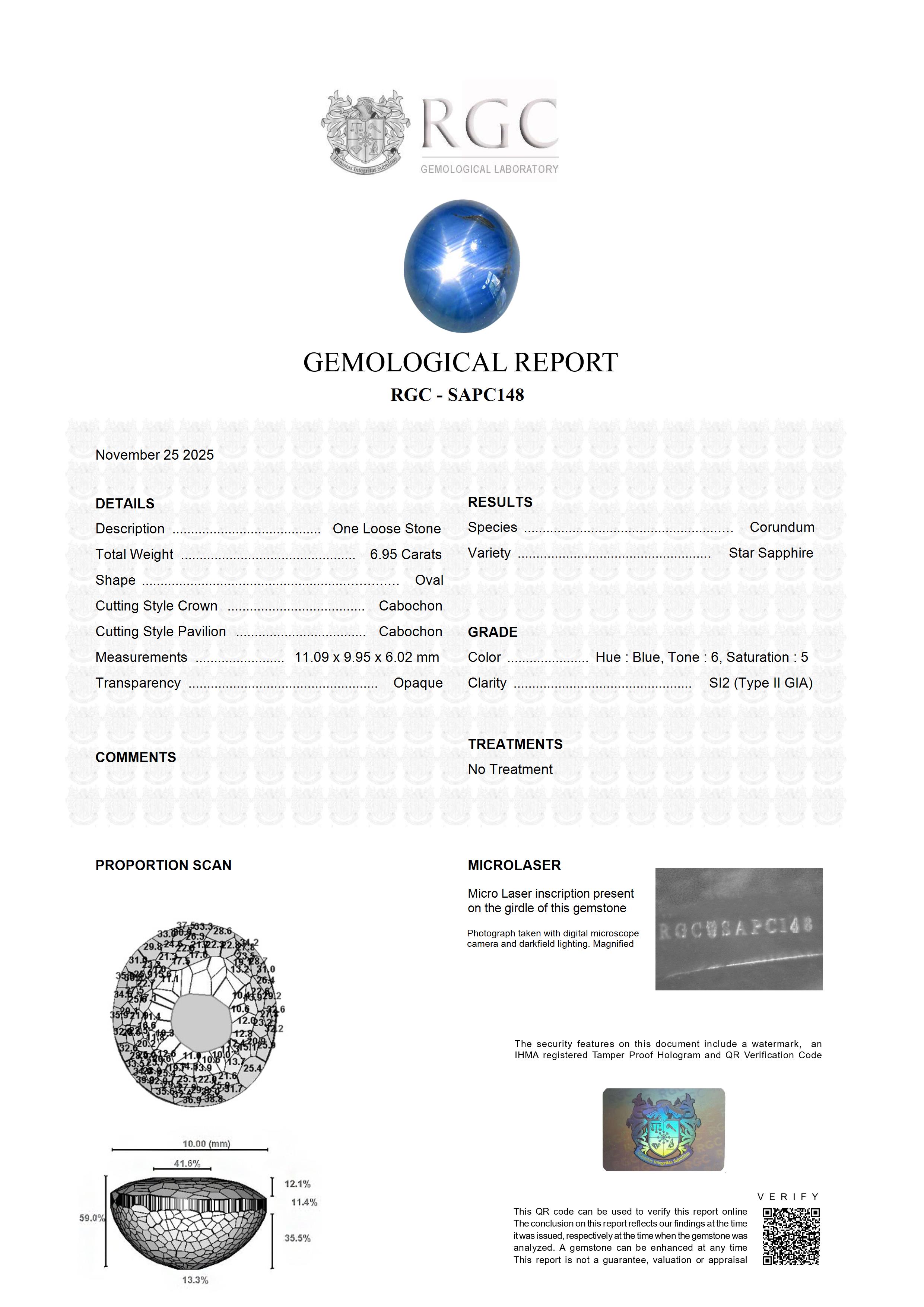 • Gemologists Remarks: Fine. Top grade color and saturation. Fine 6 ray star