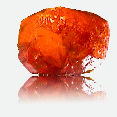 This Spessartite Mandarin Garnet is over 500 Million Years old. After being removed from the vein and "knocked" to remove the host rock, this Spessartite Mandarin Garnet weighed 1.569 Grams. The photograph on the left, shows it as it looked at this stage in its journey. Tests showed it has a Specific Gravity of 4.15, an optic character of SR and it formed in the Othorhombic crystal system. Its Chemical Composition is Mn3Al2(SiO4)3 and its Cause of Color is Manganese/Iron