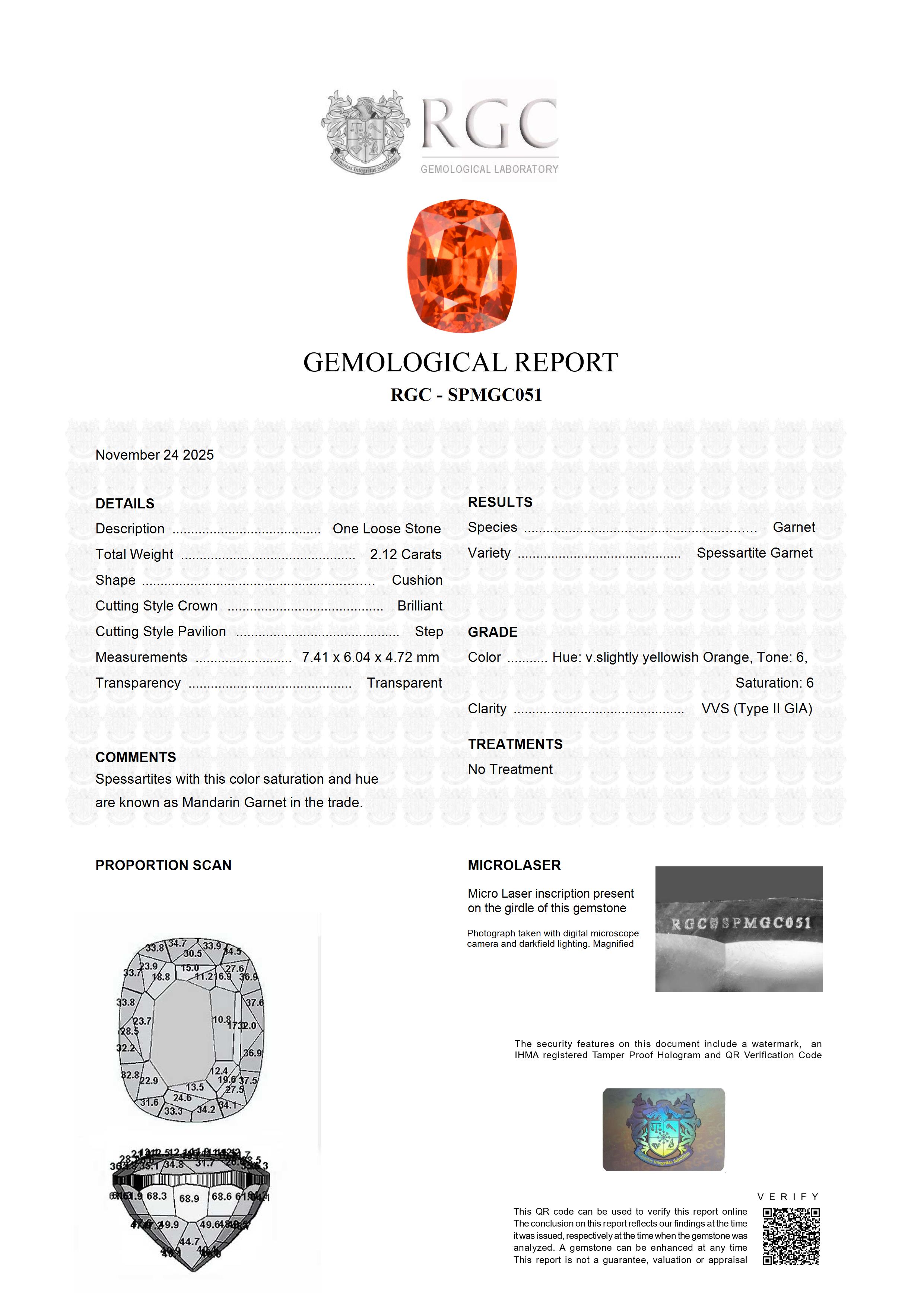 You can view the report in the “Grading and Laboratory Certification” section below.