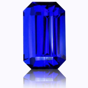 A fine and rare Tanzanite. This wonderful 5.79 Emerald Cut boasts all the characteristics of the finest genre. A remarkable depth and vividness of color cut predominately on the blue axis leading to a very fine sharp crisp blue in white light and flecked with periwinkle and violet in incandescent light. Emerald cuts can tend to "leak" color due to the nature of the long straight facets on the pavilion but this stone holds it strongly, exhibiting exceptional saturation. A very fine, rare Tanzanite in all respects - you don't see these every day.