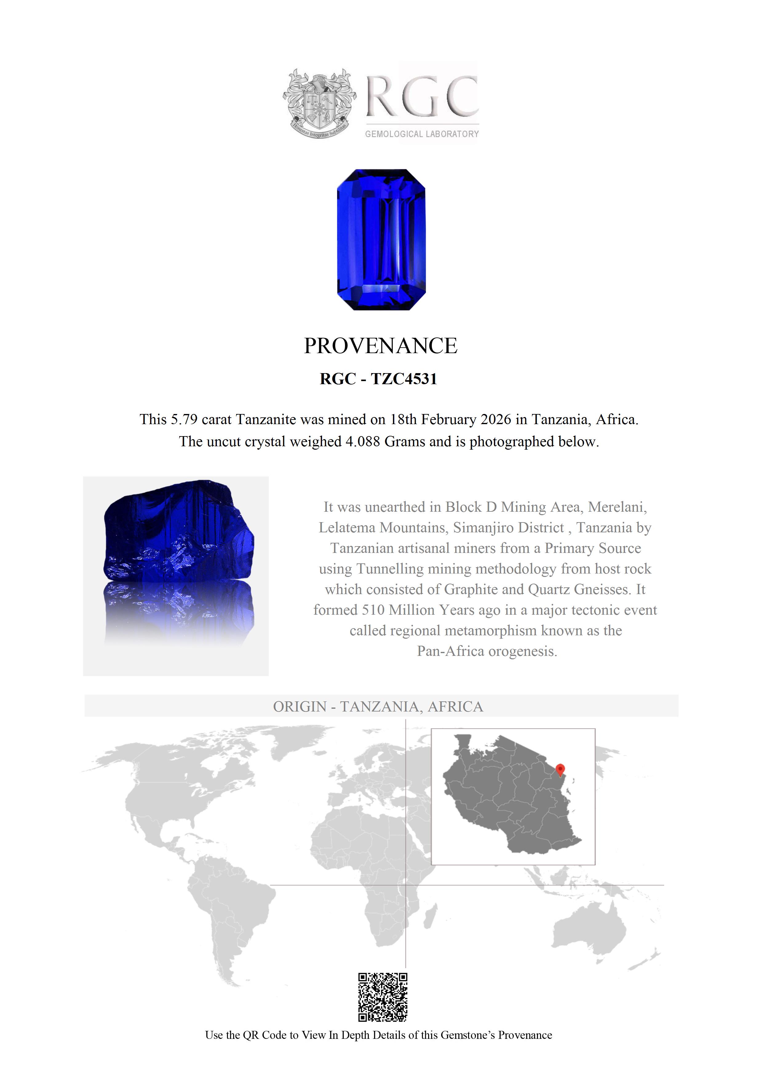 Half a billion years later, the gem’s story took a new turn in Block D of the Merelani Mines, Tanzania. Here, an artisanal miner, working his own claim, searched tirelessly. With each strike of his pickaxe, he tunneled deeper into the earth, guided by years of knowledge and intuition.