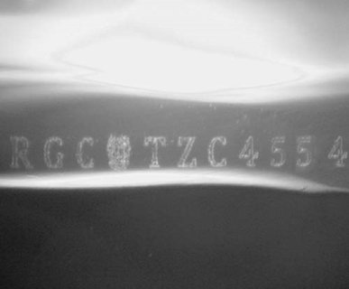 This image is an actual photograph of the laser inscription on this particular gemstone. Photography is done using a microscope camera at 45 x magnification to render the image.