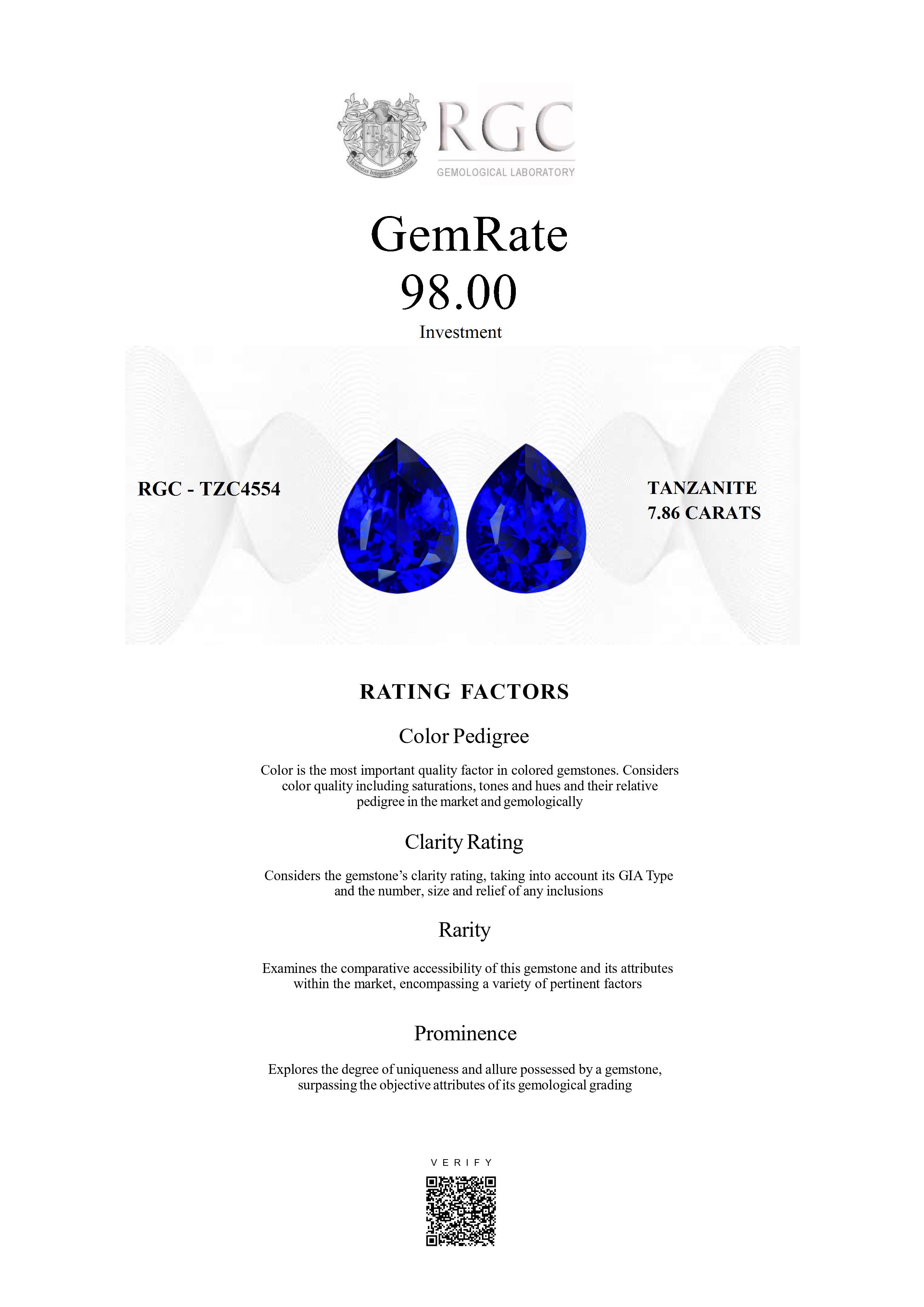 Experienced gemologists forensically examine each gemstone and apply ratings across all factors with different weightings to come up with a single number and classification thereby providing comparability by reducing the complexity inherent to colored gemstones.