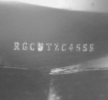This image is an actual photograph of the laser inscription on this particular gemstone. Photography is done using a microscope camera at 45 x magnification to render the image.