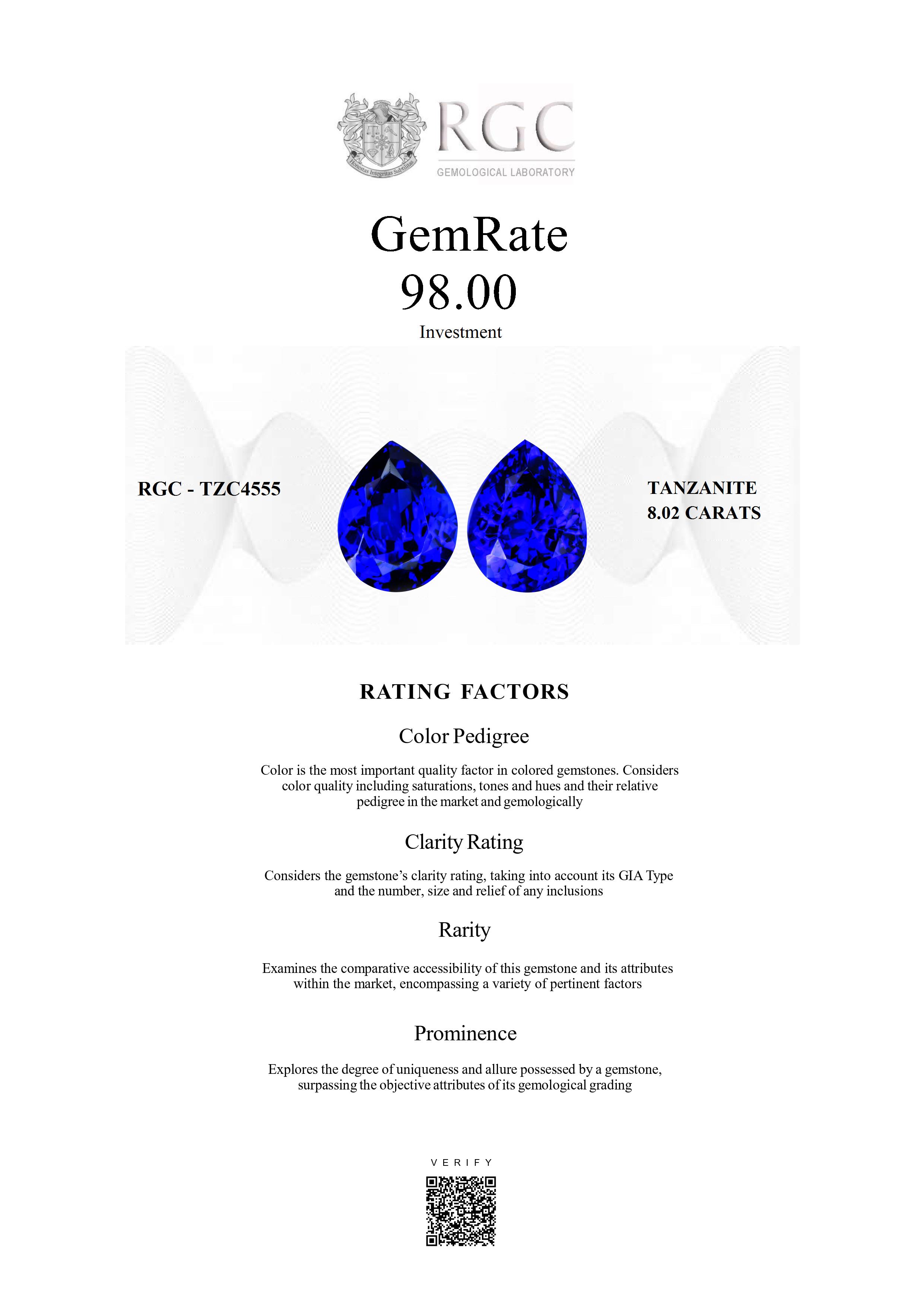 The RGC GemRate is a revolutionary system that addresses the importance and difficulty of comparing different colored gemstones with their peers in the marketplace. It assesses a wide variety of factors that exist in the marketplace and gemologically to classify gems in their genre using a standardized rating system. These factors are myriad but include quantifiable factors like color grade, clarity and cut, rarity factors examining relative rarity and also qualitative factors such as prominence, which examines the degree to which a gemstone stands out and captivates beyond just its measurable quality traits. It's essentially the stone's ability to catch attention and distinguish itself from others.