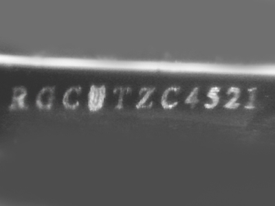 This image is an actual photograph of the laser inscription on this particular gemstone. Photography is done using a microscope camera at 45 x magnification to render the image.