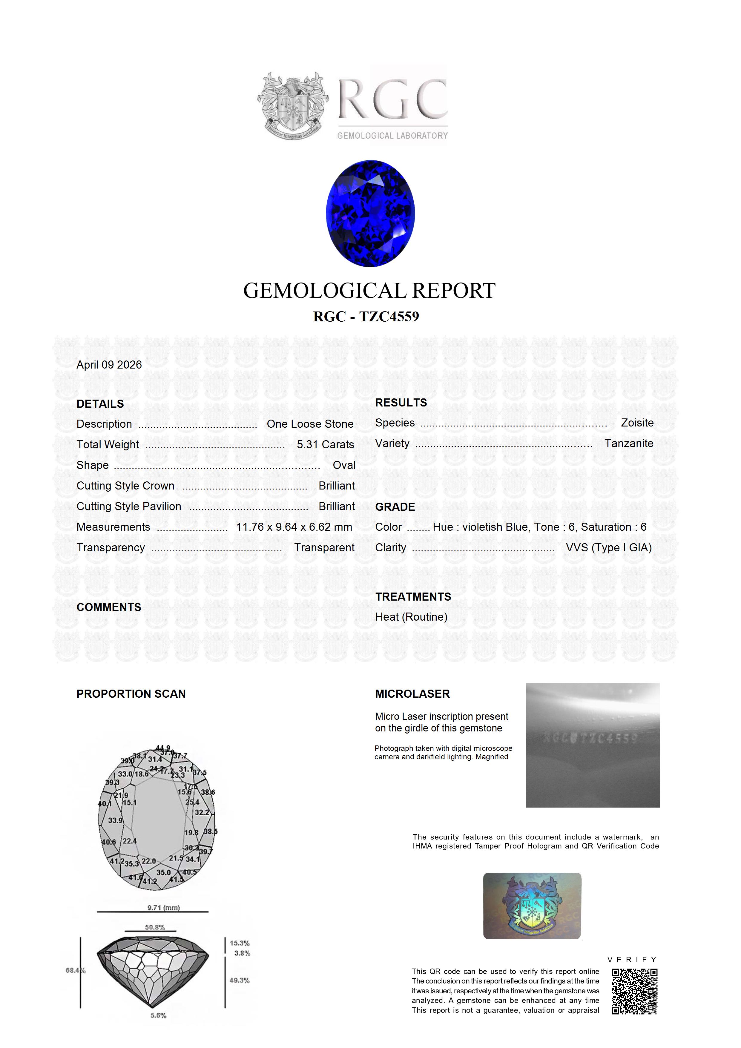 Our GemRate system was devised by our GIA Gemologists to provide a snapshot of a gemstone’s pedigree. This report is shipped with the gemstone.