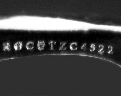 This image is an actual photograph of the laser inscription on this particular gemstone. Photography is done using a microscope camera at 45 x magnification to render the image.
