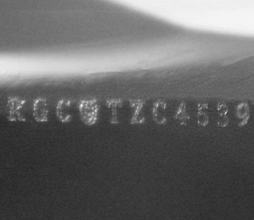 This image is an actual photograph of the laser inscription on this particular gemstone. Photography is done using a microscope camera at 45 x magnification to render the image.