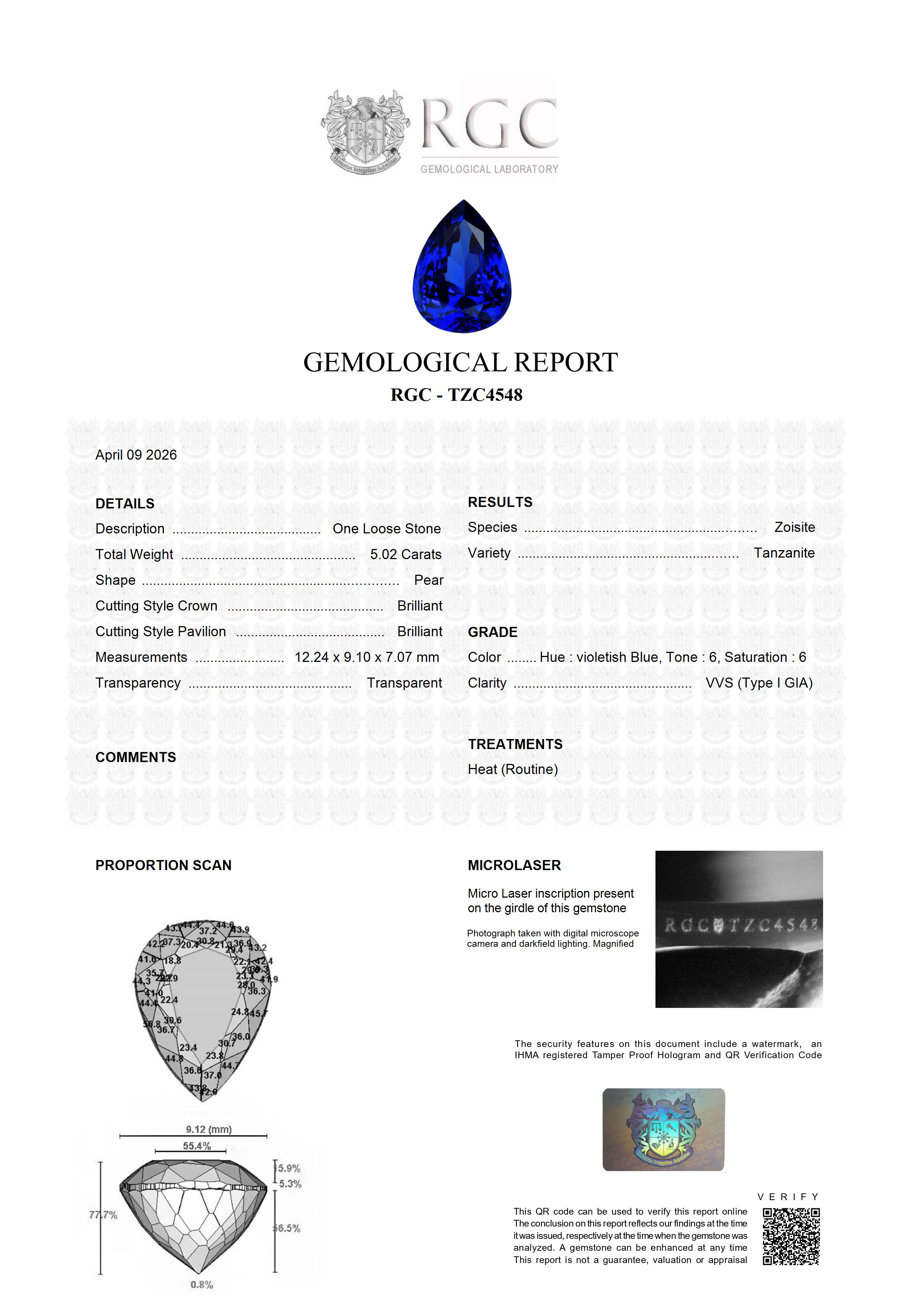 You can view the report in the “Grading and Laboratory Certification” section below.