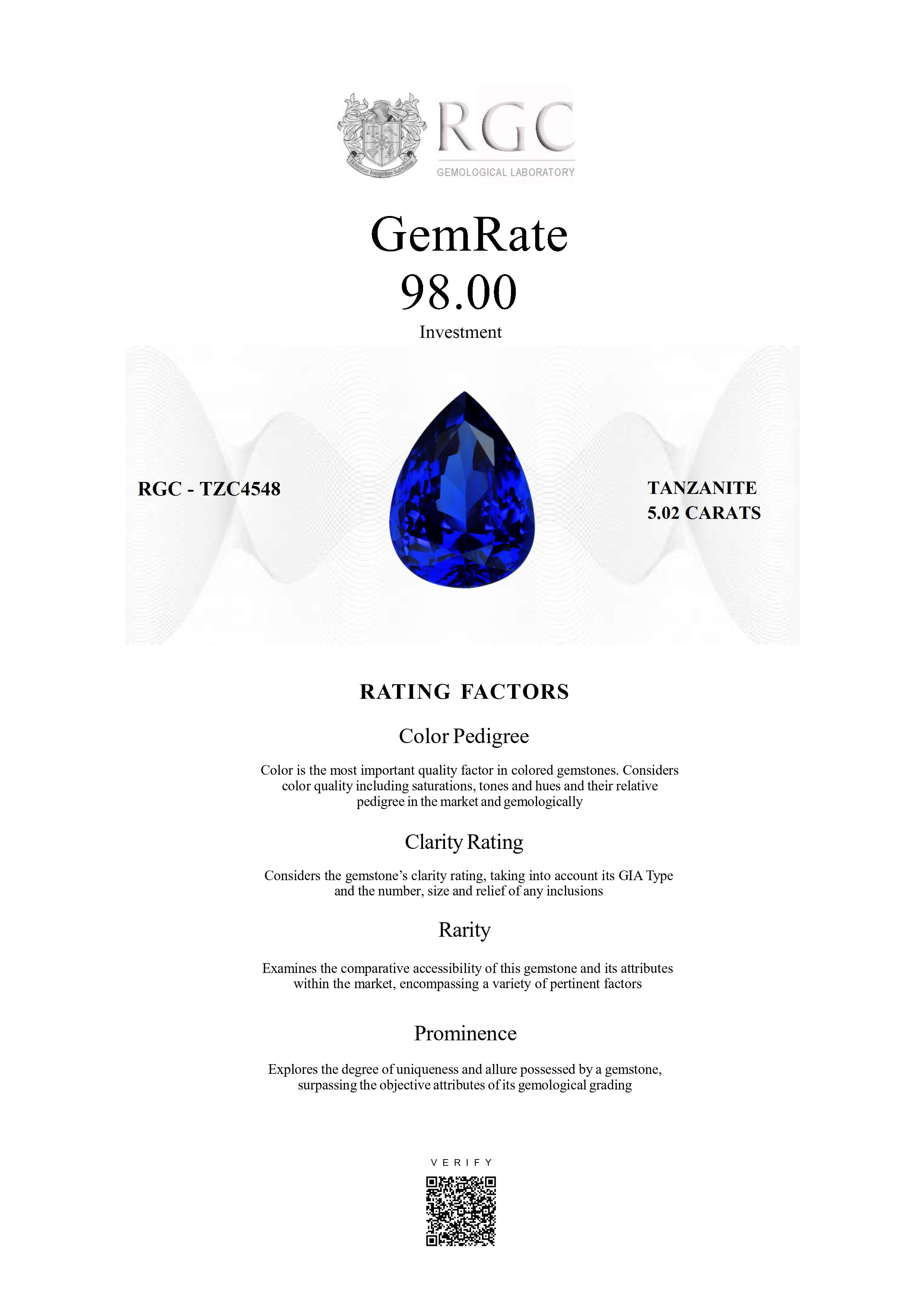 The RGC GemRate is a revolutionary system that addresses the importance and difficulty of comparing different colored gemstones with their peers in the marketplace. It assesses a wide variety of factors that exist in the marketplace and gemologically to classify gems in their genre using a standardized rating system. These factors are myriad but include quantifiable factors like color grade, clarity and cut, rarity factors examining relative rarity and also qualitative factors such as prominence, which examines the degree to which a gemstone stands out and captivates beyond just its measurable quality traits. It's essentially the stone's ability to catch attention and distinguish itself from others.