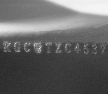 This image is an actual photograph of the laser inscription on this particular gemstone. Photography is done using a microscope camera at 45 x magnification to render the image.