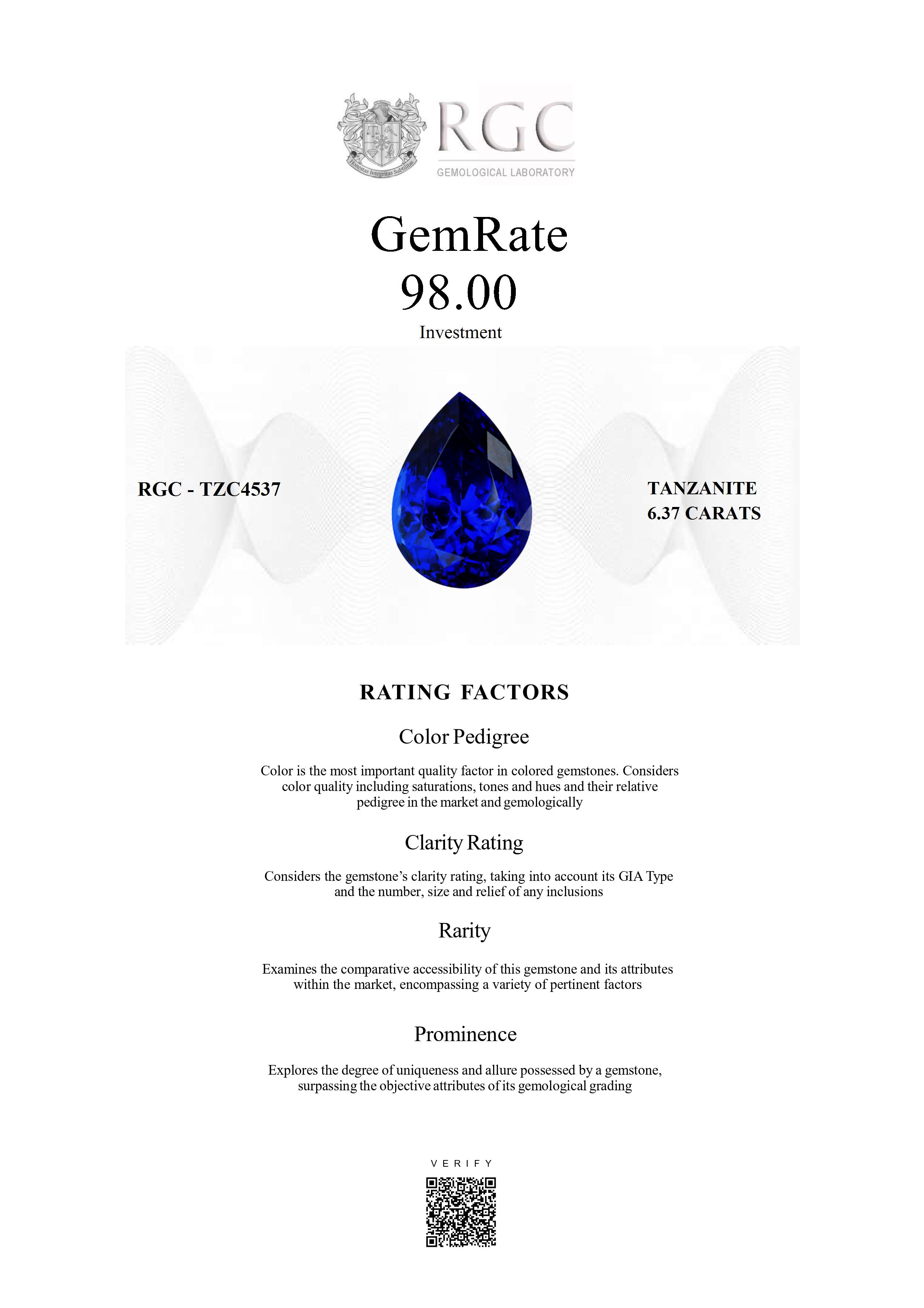 Experienced gemologists forensically examine each gemstone and apply ratings across all factors with different weightings to come up with a single number and classification thereby providing comparability by reducing the complexity inherent to colored gemstones.