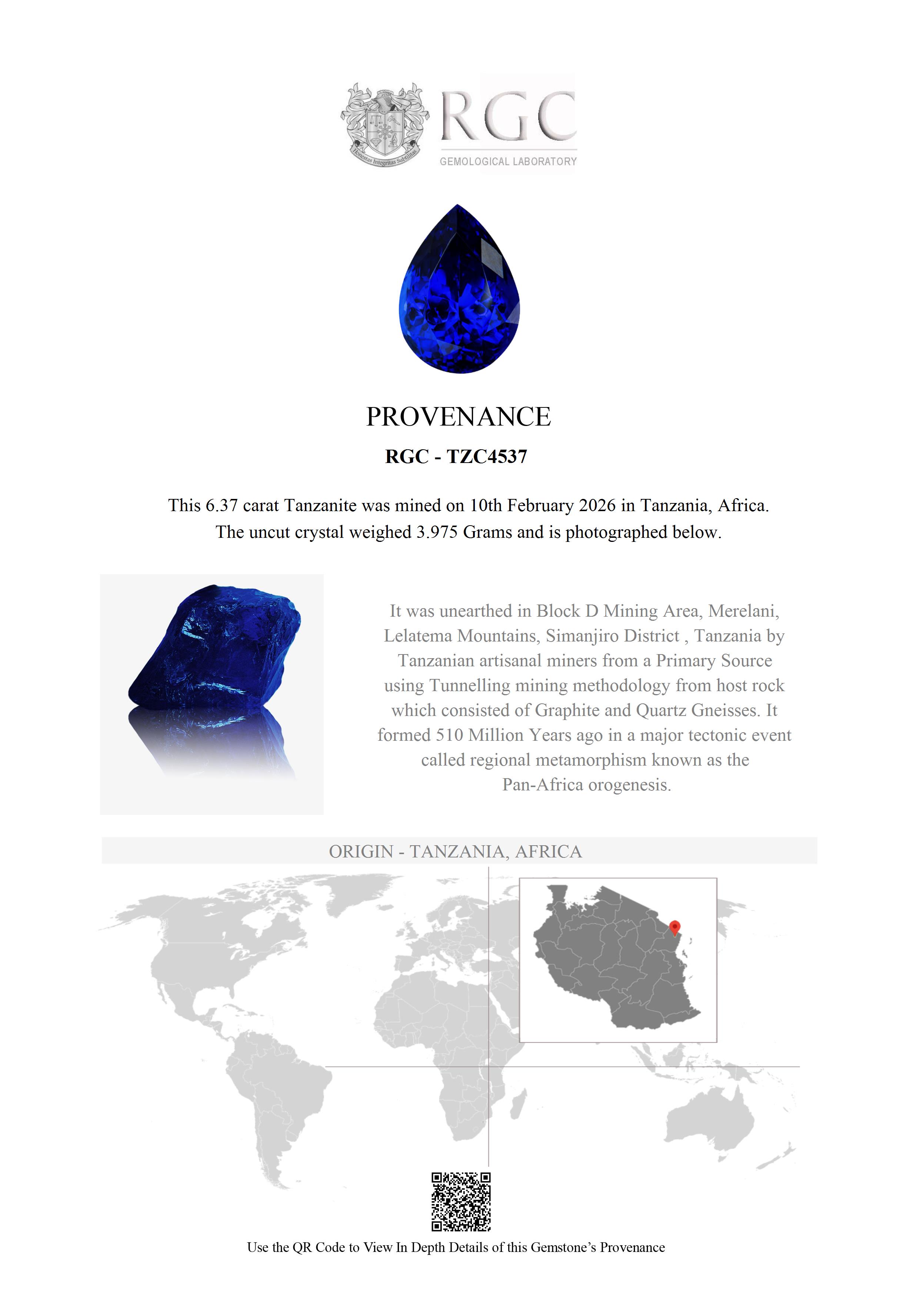 This beautiful, fine Tanzanite was mined only recently, but for nearly 500 million years, it lay hidden deep beneath the surface of northern Tanzania—the Merelani Hills—waiting to be discovered.