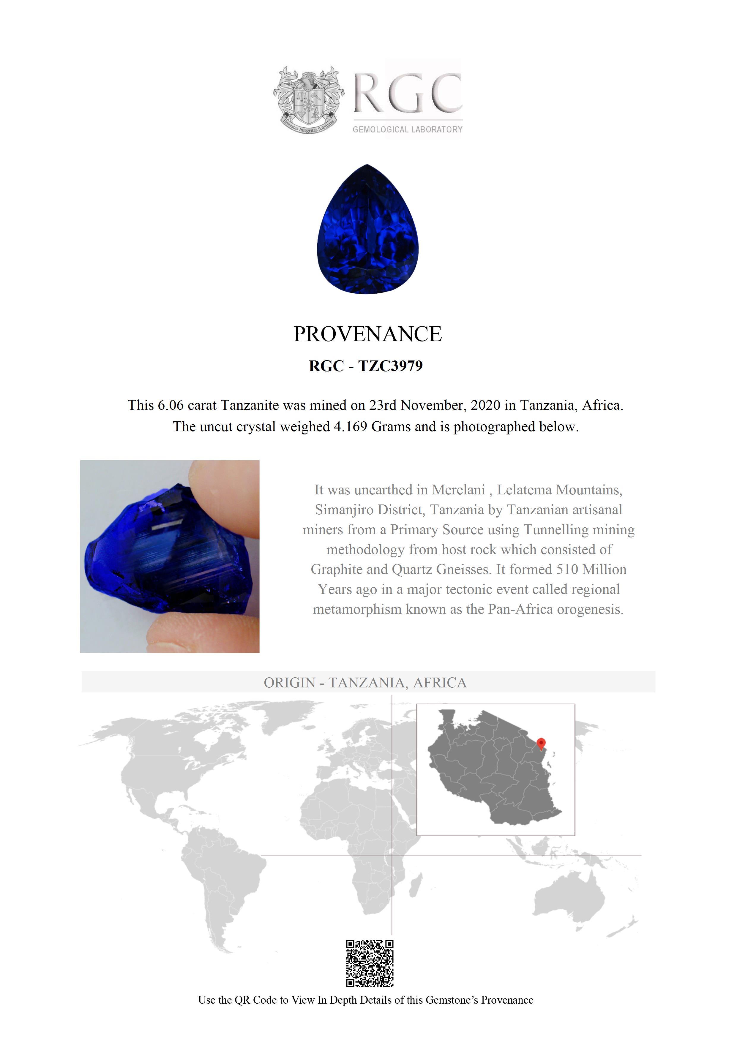 This rare Tanzanite was amongst a number of crystals that formed in this structure as a result of the enormous geological events that formed the mighty Mount Kilimanjaro. It lay there for hundreds of millions of years until it was discovered by independent Tanzanite miners as they explored deep into the earth's surface. Five hundred million years after its conception this lovely, rare crystal finds itself in human hands.