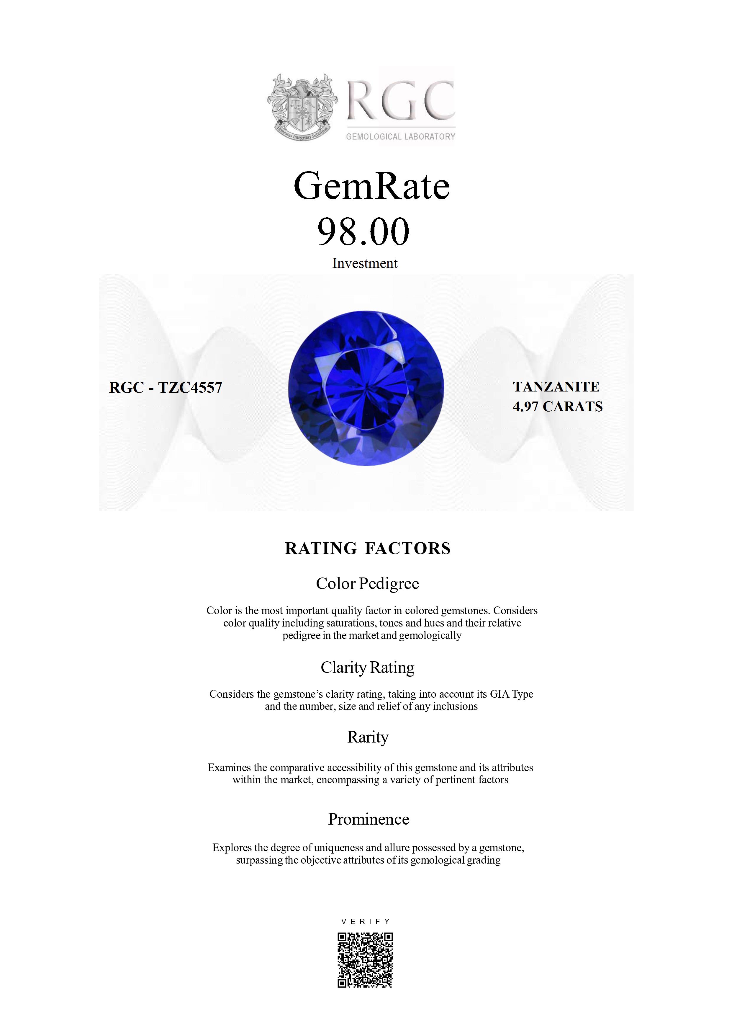 The RGC GemRate is a revolutionary system that addresses the importance and difficulty of comparing different colored gemstones with their peers in the marketplace. It assesses a wide variety of factors that exist in the marketplace and gemologically to classify gems in their genre using a standardized rating system. These factors are myriad but include quantifiable factors like color grade, clarity and cut, rarity factors examining relative rarity and also qualitative factors such as prominence, which examines the degree to which a gemstone stands out and captivates beyond just its measurable quality traits. It's essentially the stone's ability to catch attention and distinguish itself from others.