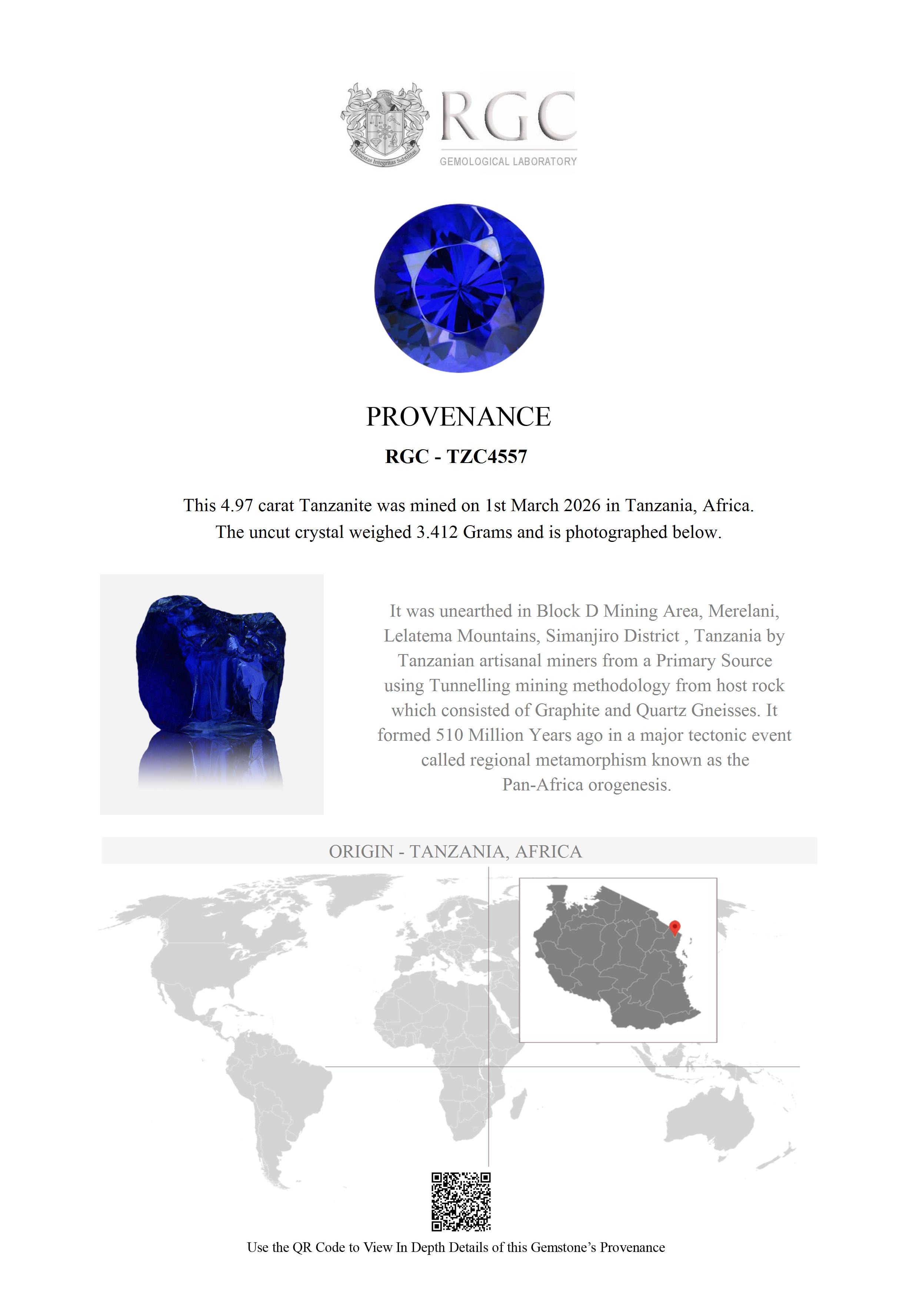 Half a billion years later, the gem’s story took a new turn in Block D of the Merelani Mines, Tanzania. Here, an artisanal miner, working his own claim, searched tirelessly. With each strike of his pickaxe, he tunneled deeper into the earth, guided by years of knowledge and intuition.