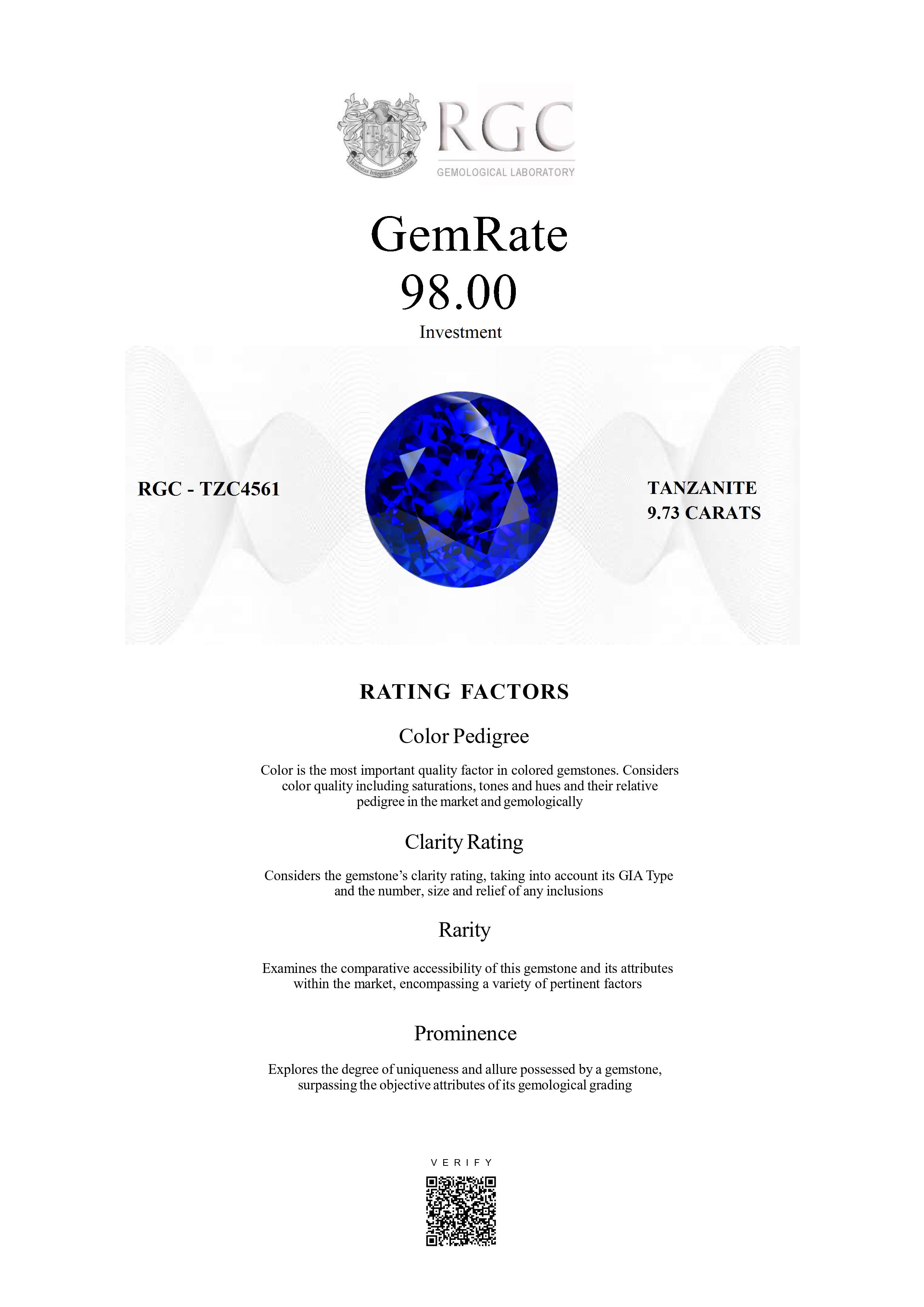 The RGC GemRate is a revolutionary system that addresses the importance and difficulty of comparing different colored gemstones with their peers in the marketplace. It assesses a wide variety of factors that exist in the marketplace and gemologically to classify gems in their genre using a standardized rating system. These factors are myriad but include quantifiable factors like color grade, clarity and cut, rarity factors examining relative rarity and also qualitative factors such as prominence, which examines the degree to which a gemstone stands out and captivates beyond just its measurable quality traits. It's essentially the stone's ability to catch attention and distinguish itself from others.