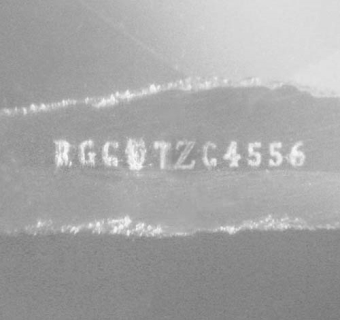 This image is an actual photograph of the laser inscription on this particular gemstone. Photography is done using a microscope camera at 45 x magnification to render the image.