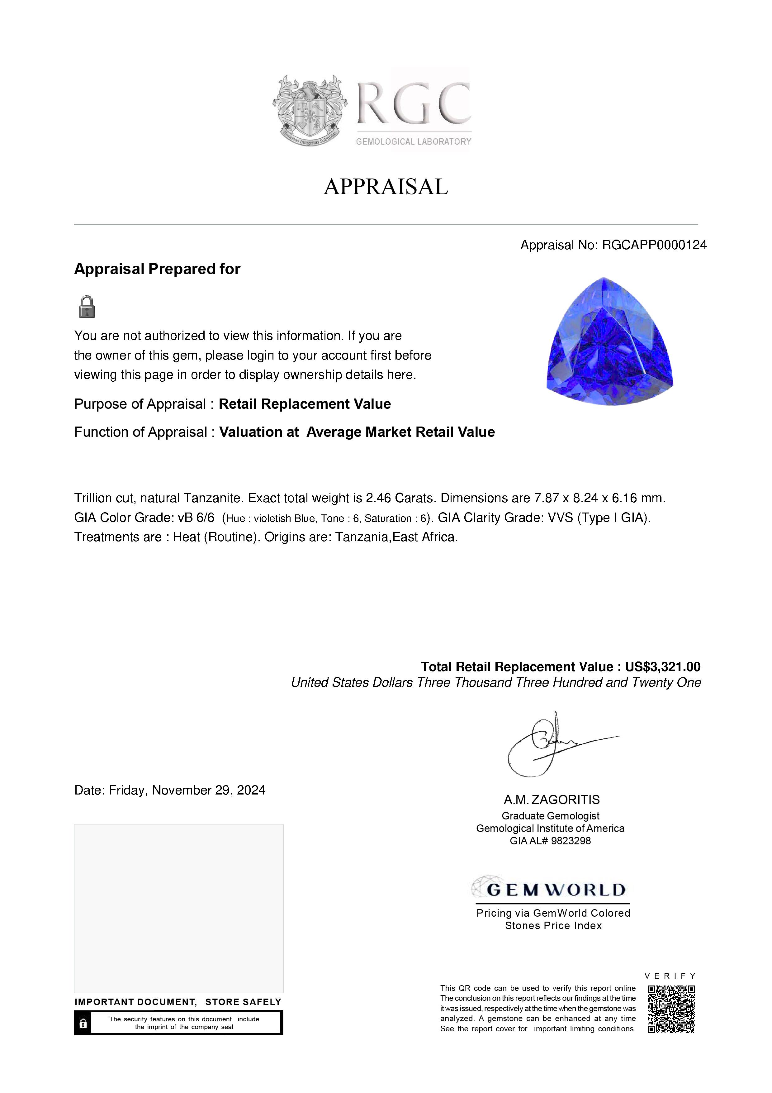 Our GemRate system was devised by our GIA Gemologists to provide a snapshot of a gemstone’s pedigree. This report is shipped with the gemstone.