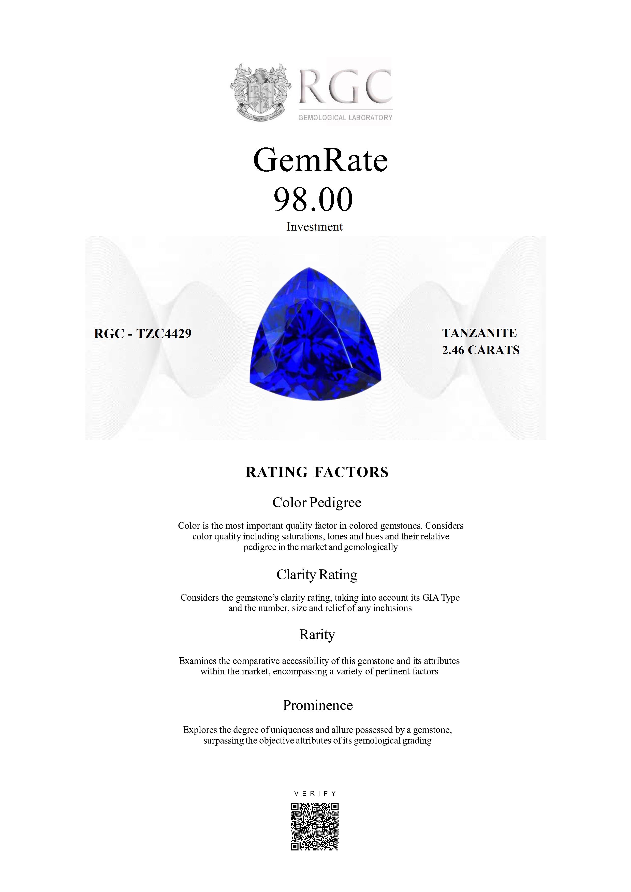 The RGC GemRate is a revolutionary system that addresses the importance and difficulty of comparing different colored gemstones with their peers in the marketplace. It assesses a wide variety of factors that exist in the marketplace and gemologically to classify gems in their genre using a standardized rating system. These factors are myriad but include quantifiable factors like color grade, clarity and cut, rarity factors examining relative rarity and also qualitative factors such as prominence, which examines the degree to which a gemstone stands out and captivates beyond just its measurable quality traits. It's essentially the stone's ability to catch attention and distinguish itself from others.