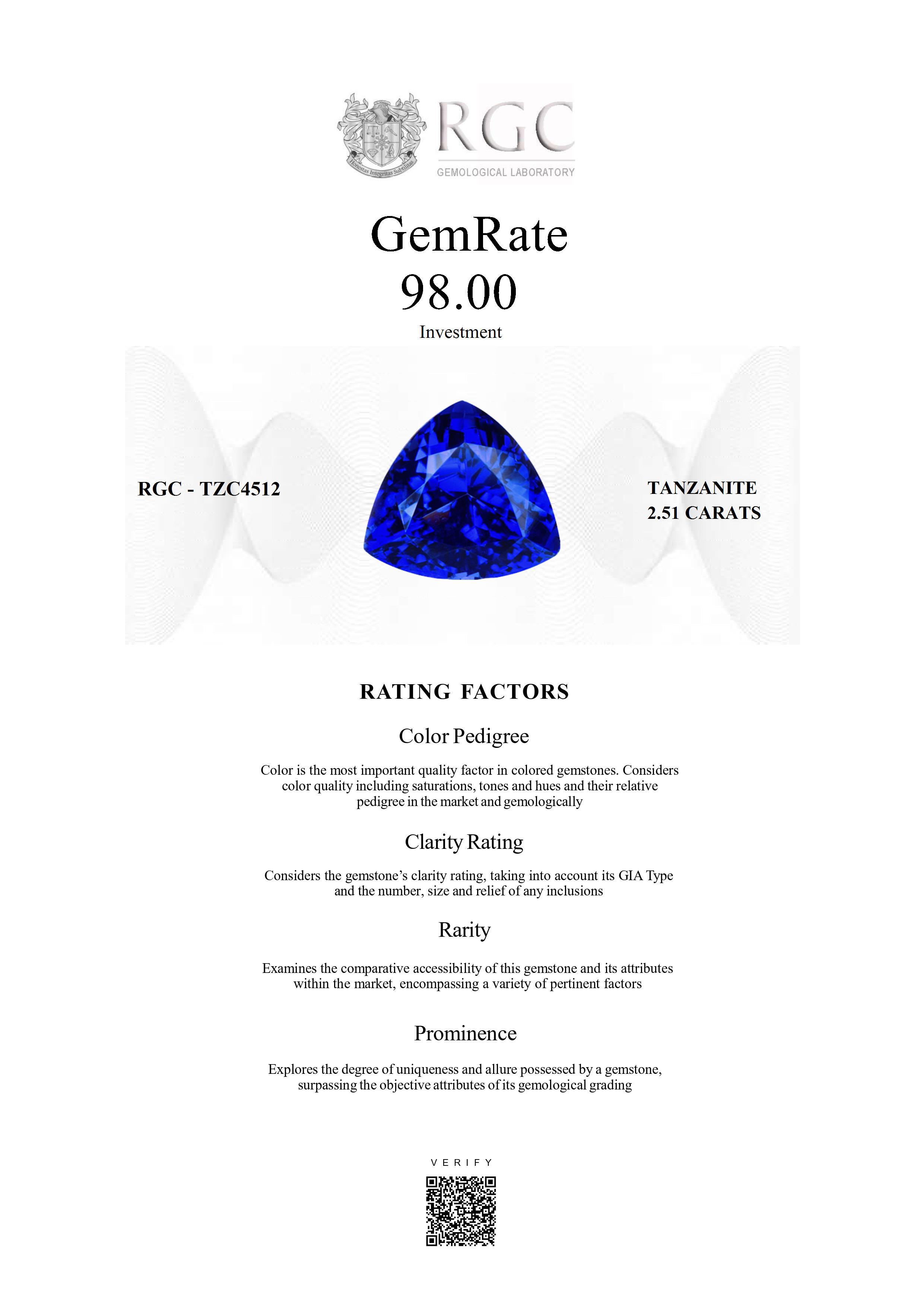 The RGC GemRate is a revolutionary system that addresses the importance and difficulty of comparing different colored gemstones with their peers in the marketplace. It assesses a wide variety of factors that exist in the marketplace and gemologically to classify gems in their genre using a standardized rating system. These factors are myriad but include quantifiable factors like color grade, clarity and cut, rarity factors examining relative rarity and also qualitative factors such as prominence, which examines the degree to which a gemstone stands out and captivates beyond just its measurable quality traits. It's essentially the stone's ability to catch attention and distinguish itself from others.