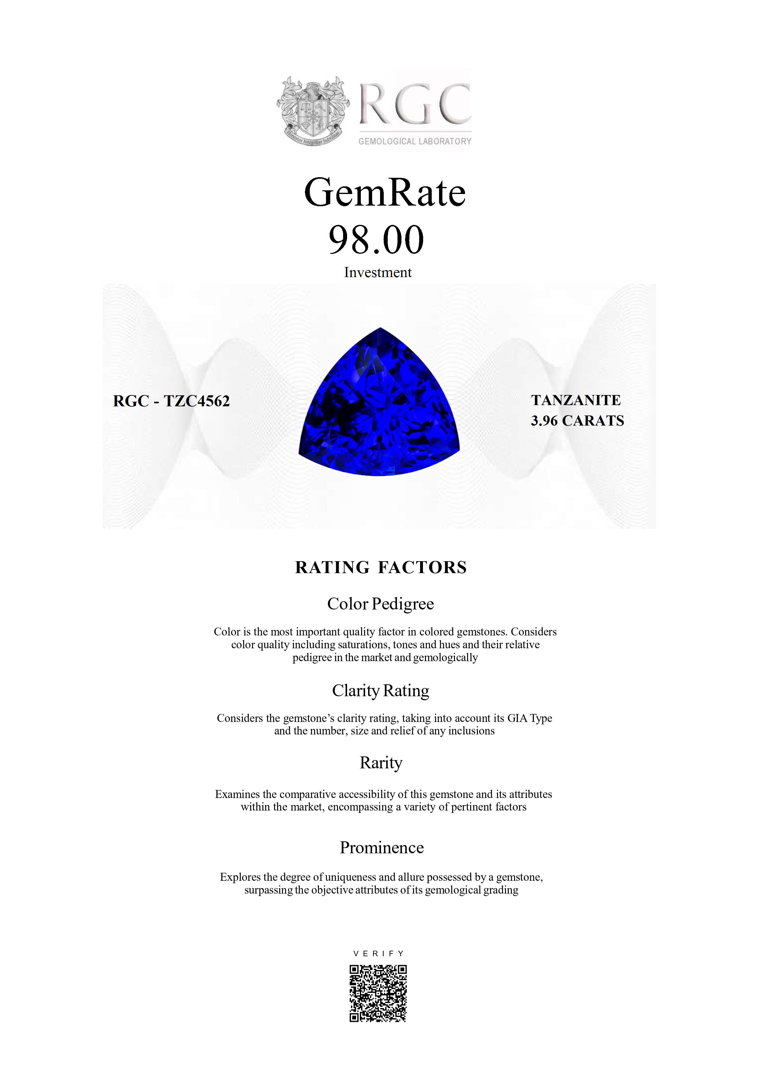 The RGC GemRate is a revolutionary system that addresses the importance and difficulty of comparing different colored gemstones with their peers in the marketplace. It assesses a wide variety of factors that exist in the marketplace and gemologically to classify gems in their genre using a standardized rating system. These factors are myriad but include quantifiable factors like color grade, clarity and cut, rarity factors examining relative rarity and also qualitative factors such as prominence, which examines the degree to which a gemstone stands out and captivates beyond just its measurable quality traits. It's essentially the stone's ability to catch attention and distinguish itself from others.
